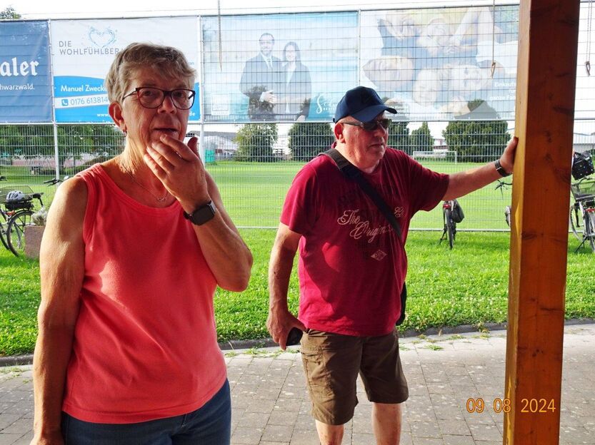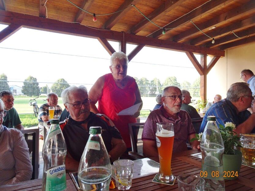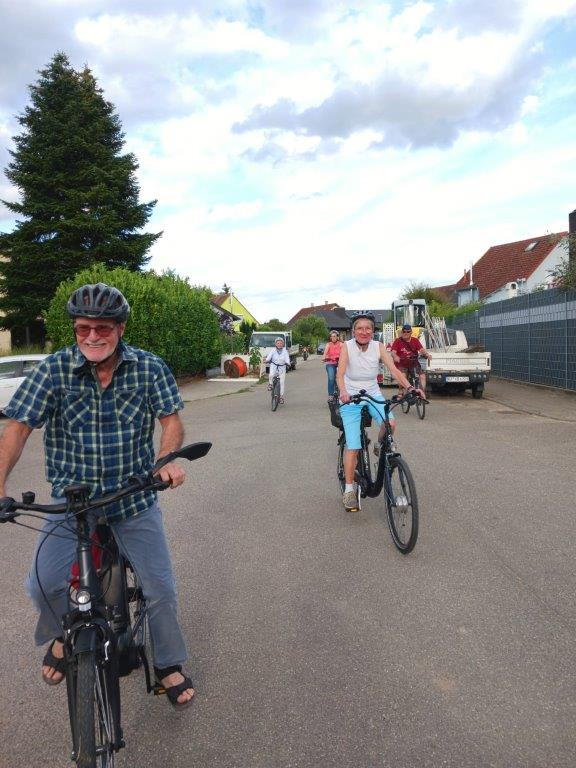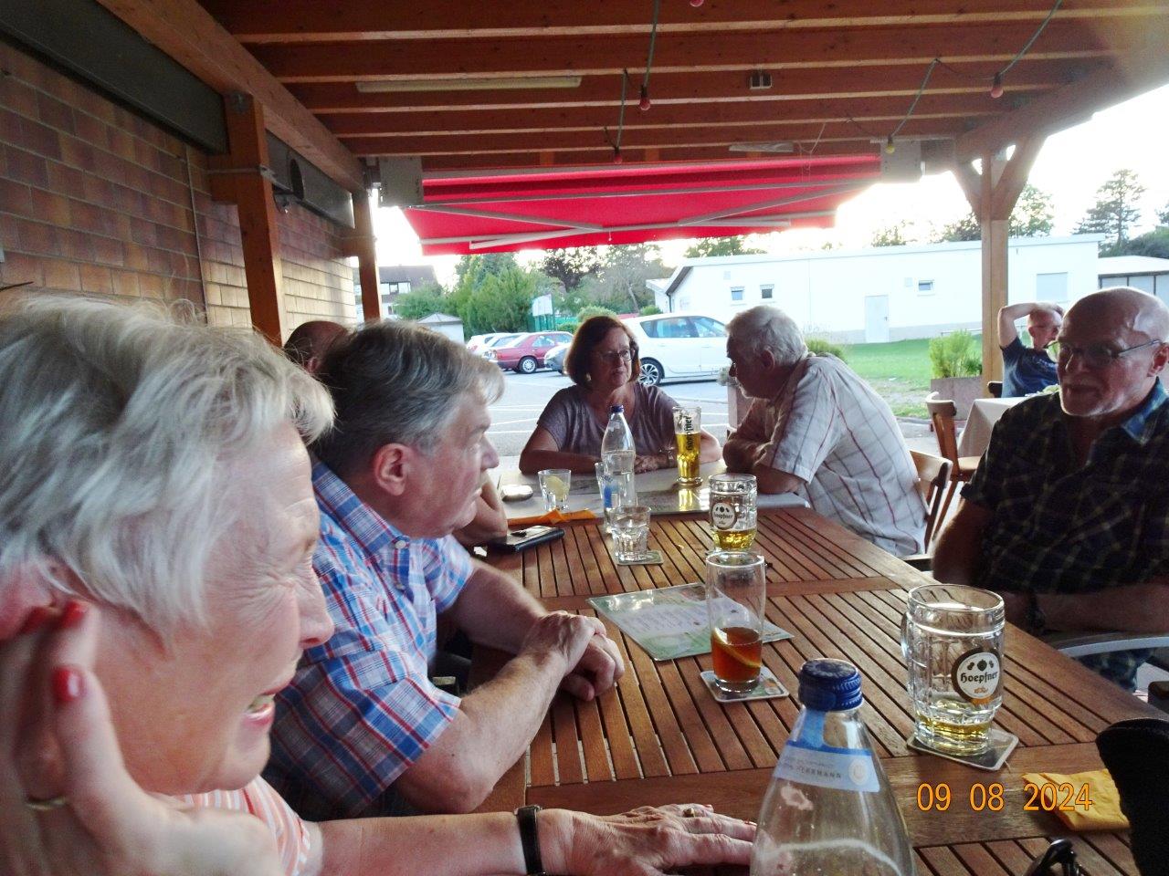 Am 9. August fand sich pünktlich um 18.00 Uhr eine Gruppe von 10 Radlern ein, die sich mit Rainer und Susanne auf eine schöne Runde aufmachte. Durch Wiesen, Wälder und Felder ging´s über Graben, Richtung Rußheim und schließlich über Liedolsheim zurück nach Hochstetten. Dort setzte die Gruppe zum Einkehrschwung beim TVH an und wurde von den Nichtradlern vor Ort bereits erwartet. Wir waren eine stattliche Gruppe von über 20 Personen, die im Außenbereich des Restaurants von Vanny und ihrem Personal bestens mit Speis und Trank versorgt wurden. Bei guter Stimmung gab´s einiges zu erzählen, unter anderem war auch unser geplanter Ausflug im Oktober Gespräch.