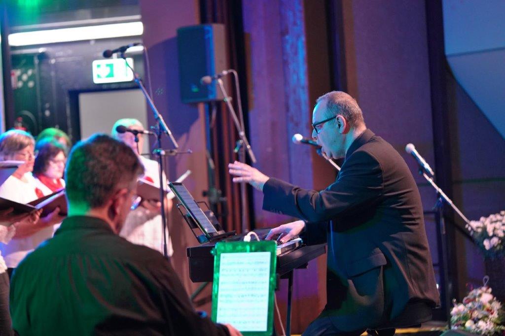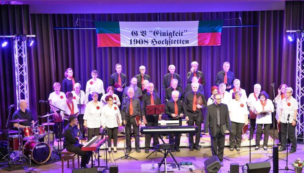 Sonntag, der 7. Mai zeigte, dass sich das wochenlange Üben und die ganzen dazu gehörenden Vorarbeiten für das Konzert absolut gelohnt haben. Gemeinsam mit den Harmonika-Freunden boten wir unseren Besuchern und unserem treuen Publikum ein abwechslungsreiches Programm. Bereits um 14.00 Uhr waren unser Chor, die Musiker und die Tontechniker zum Soundcheck vor Ort. Es sollte ja alles perfekt funktionieren. Dann kam das erste Akkordeonorchester hinzu und die Generalprobe konnte ablaufen. Unser Dirigent Aldo Martinez gab uns noch die letzten Tipps, worauf zu achten ist und das hat auch gut funktioniert. So ging´s in die verdiente Kaffeepause zum Kräfte sammeln für unseren Auftritt. Vor 18.00 Uhr füllte sich nach und nach der Saal, so dass sich die Bedenken auflösten, ob wohl viele Besucher ins Bürgerhaus kommen würden. Sie kamen, sogar Sängerinnen und Sänger von unserem Bruderverein Sängerbund waren direkt von ihrem Probenwochenende zu unserer Veranstaltung gekommen – supertoll!