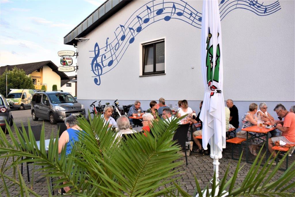 Exakt 30 Personen waren zur Einkehr in den Waldblick gekommen, das zeigt, wie sehr die Gemeinschaft gesucht und geschätzt wird. Die vollzähligen Chorproben fehlen einfach und natürlich auch das gesellige Miteinander nach der Singstunde. Unsere Sängerin Uschi Alber hat im Baden-Vokal über die Präsenzproben der Einigkeit einen treffenden Report geschrieben, wie auch andere Chöre über ihre Zeit seit Corona berichtet haben. Wie schwierig es ist, mit Abstand oder digital zu proben und dass vorab viele Maßnahmen getroffen werden, müssen um die Vorsichtsregeln einzuhalten. Wunderbar, wenn man einen geeigneten Platz im Freien hat, um dort mit einem ganz neuen Feeling zu üben und dann das Wetter noch mitspielt.
