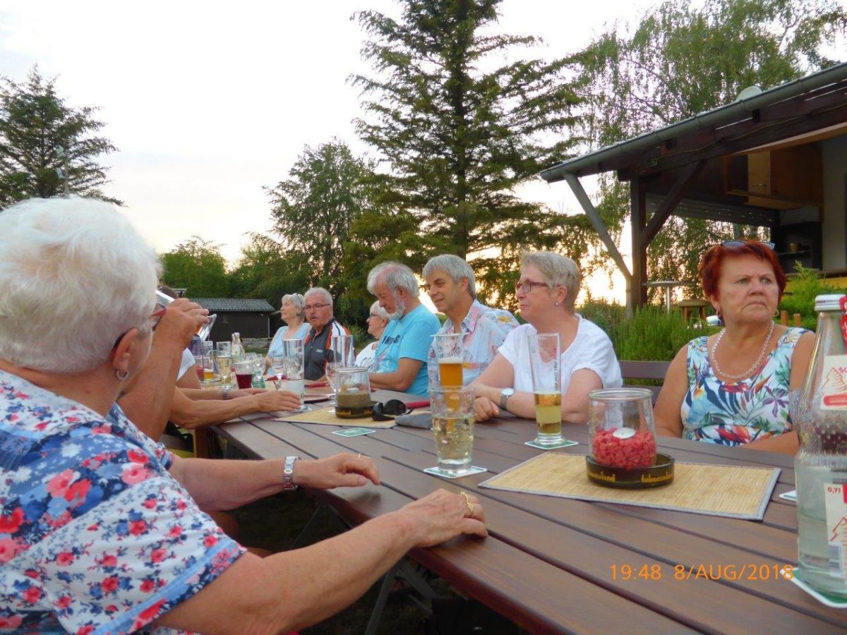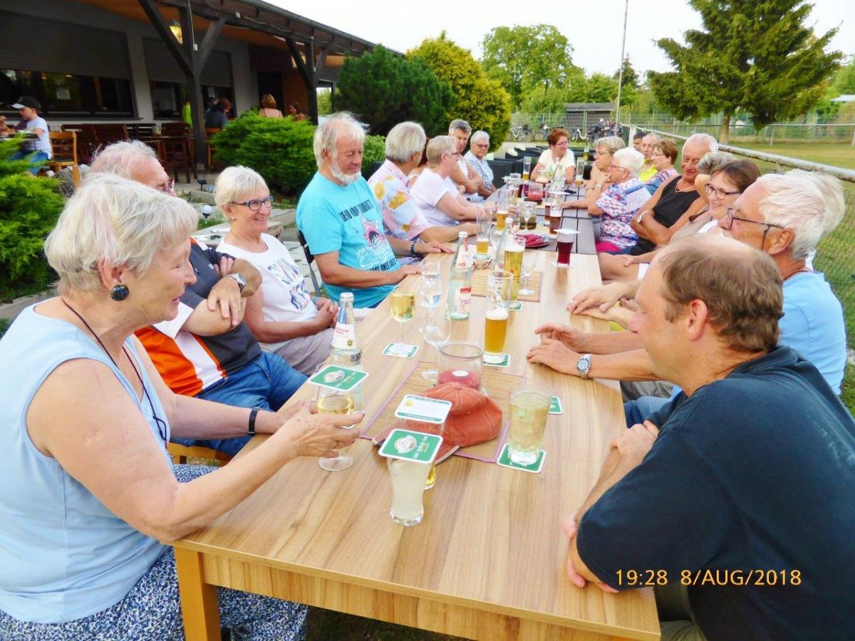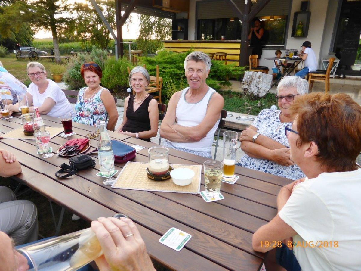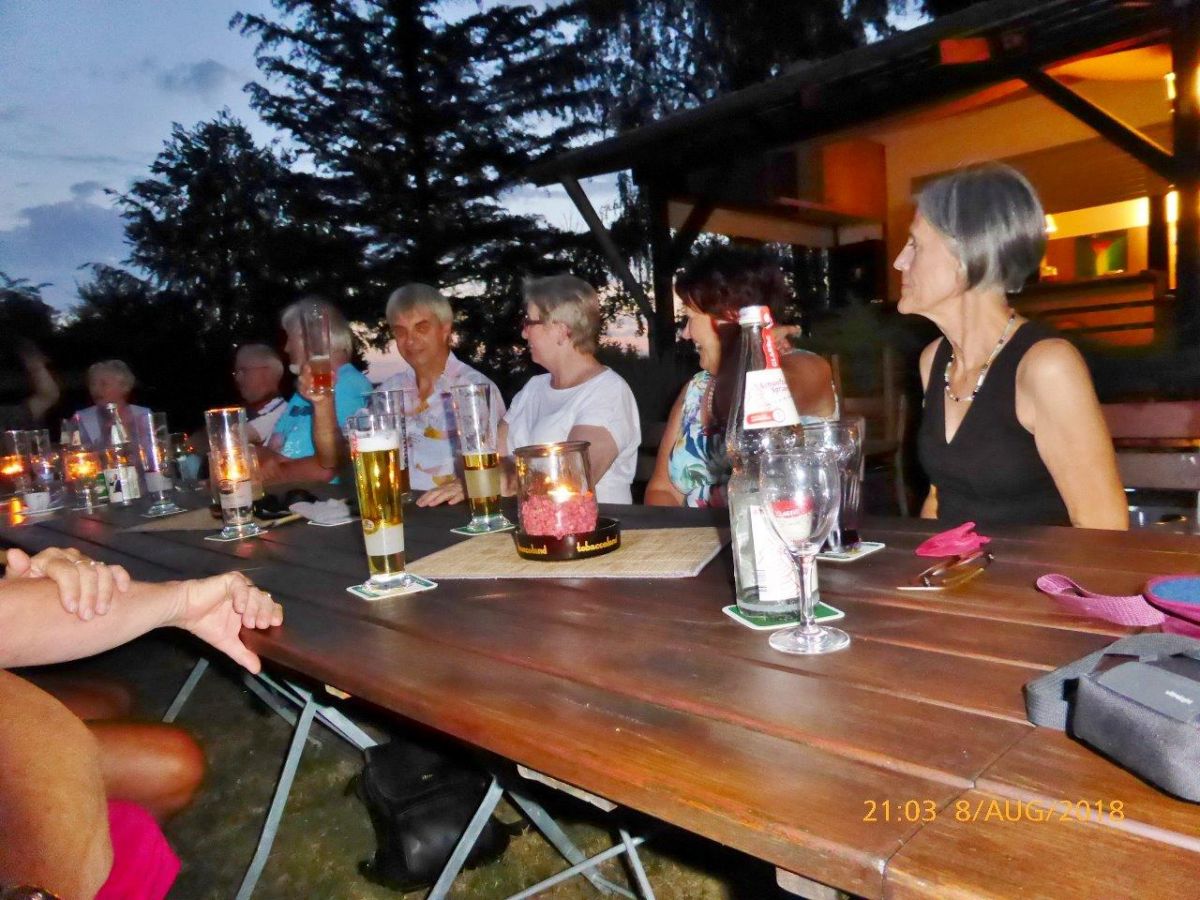 Bei den Goldmädchen war für uns im Freien gedeckt und einige Nichtradler erwarteten uns schon. Nachdem der erste Durst gestillt und das Essen gewählt war, konnten wir in gemütlicher Runde plaudern und später bei angenehmen Temperaturen die leckeren Gerichte genießen.