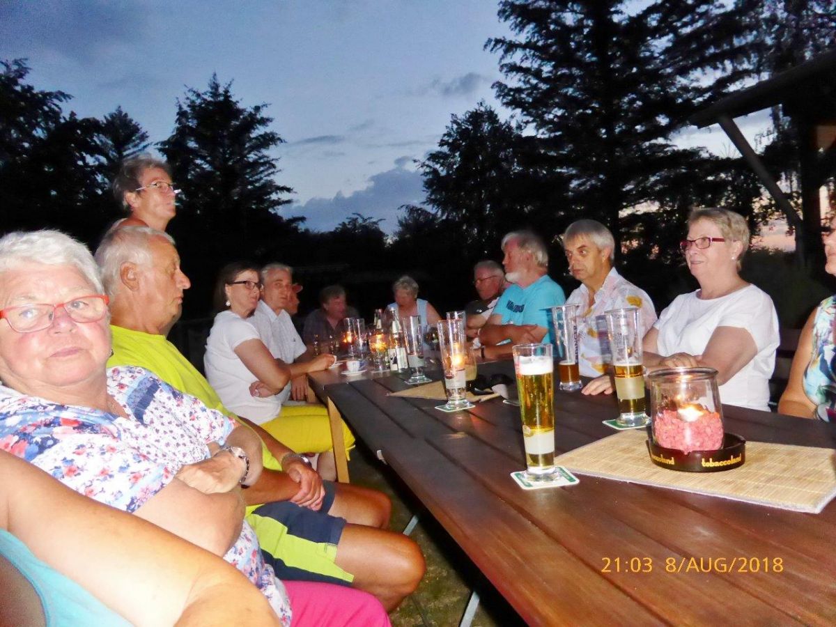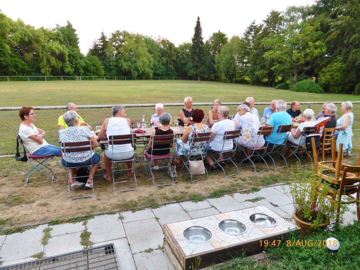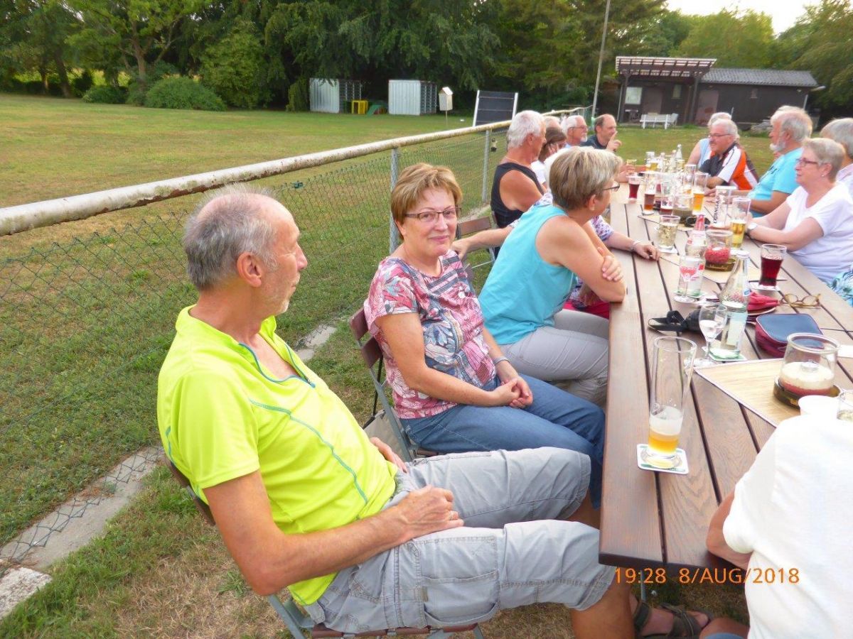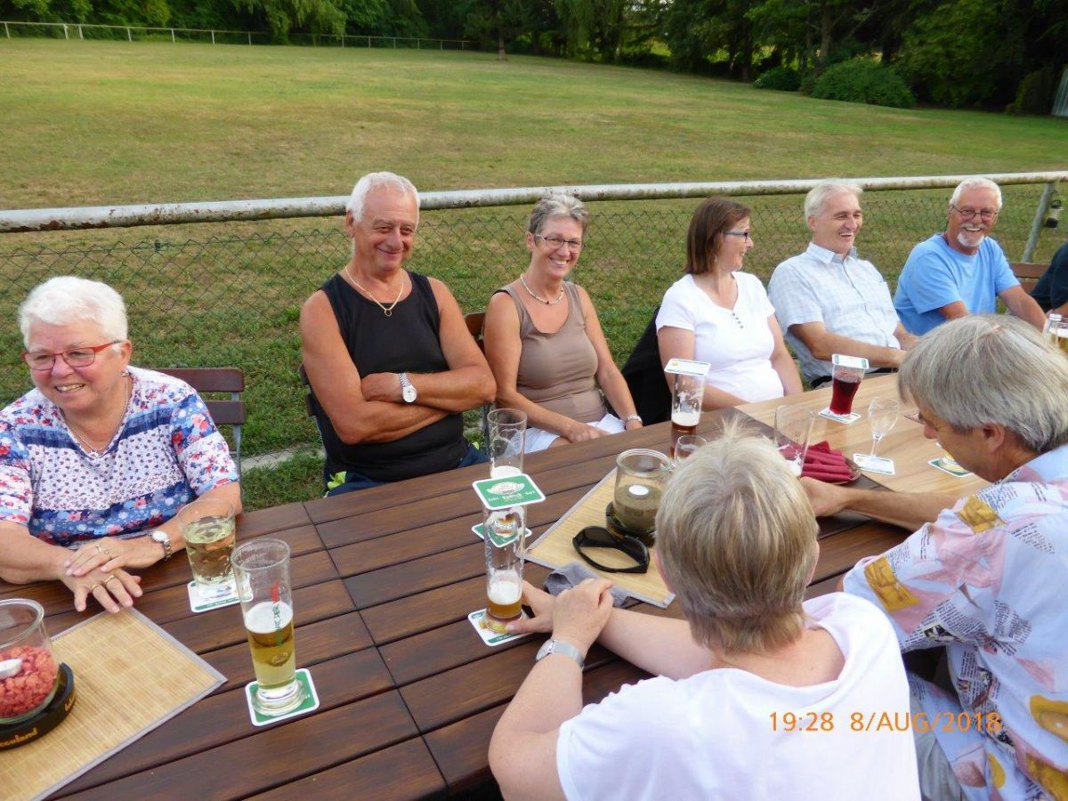 Bei den Goldmädchen war für uns im Freien gedeckt und einige Nichtradler erwarteten uns schon. Nachdem der erste Durst gestillt und das Essen gewählt war, konnten wir in gemütlicher Runde plaudern und später bei angenehmen Temperaturen die leckeren Gerichte genießen.