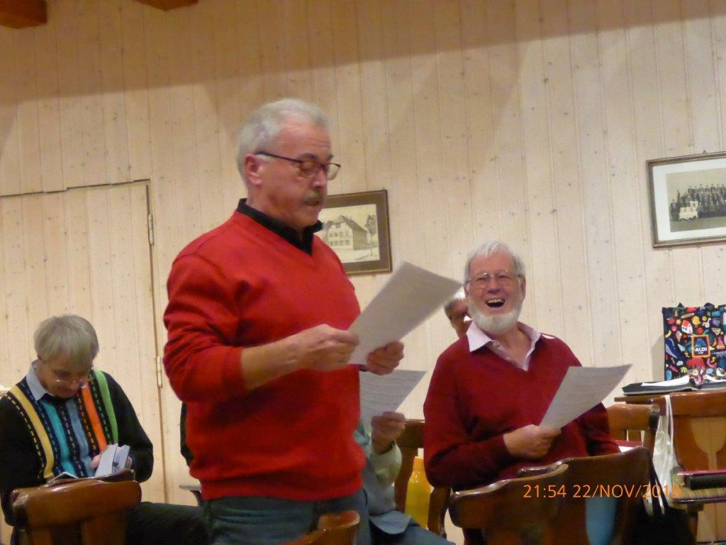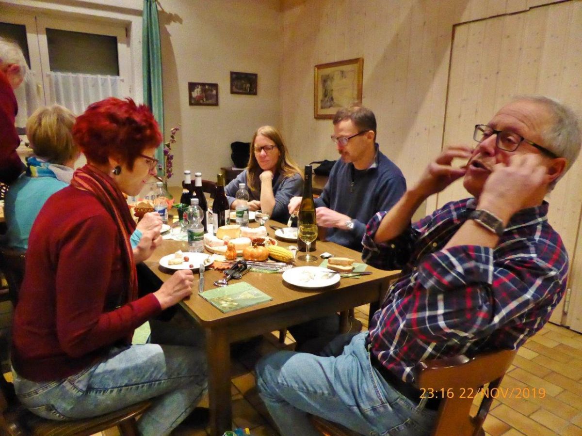 Am Freitag 22.11. brachten wir unseren Geburtstagskindern Rosi und Harald mit „Solang man Träume noch leben kann“ ein Ständchen dar. Für unsere Mühe während der Chorprobe wurden wir nach der Singstunde mehr als entlohnt. Rosi und Henry, der schon einige Tage vorher Geburtstag feierte, hatten es sich nicht nehmen lassen, uns anlässlich ihres 156. Geburtstages wieder das „savoir vivre“ mit einer köstlichen Käsevielfalt, Beaujolais primeur, Gewürztraminer und französischem Baguette kosten zu lassen – ganz herzlichen Dank euch Beiden!!