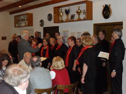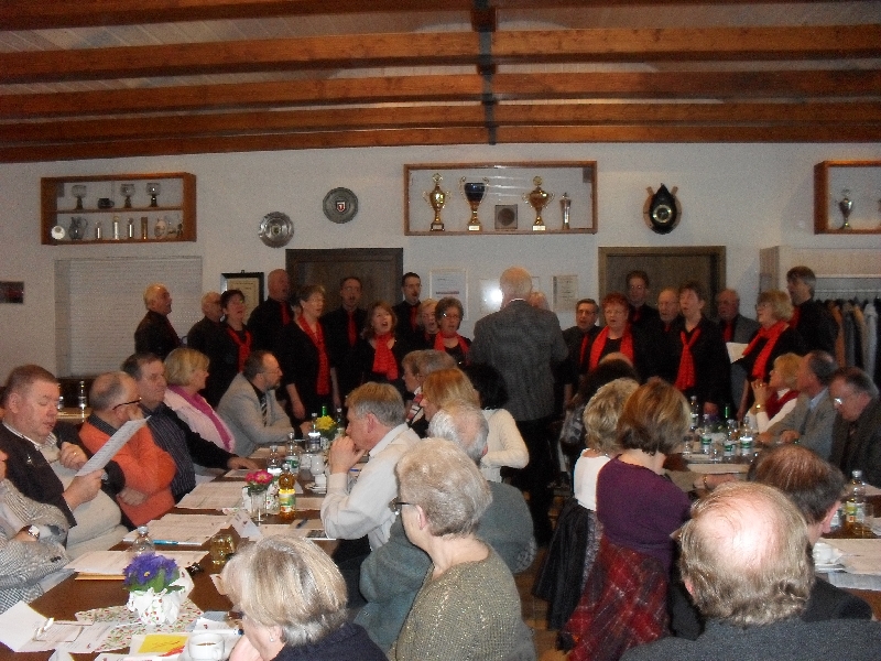 Die Sängergruppe Hardt führt ihre Jahreshauptversammlung jedes Jahr bei einem ihrer 29 Mitgliedsvereine durch. Dieses Jahr waren wir an der Reihe Gastgeber zu sein, die Sängerinnen hatten das Sängerheim mit Frühlingsblumen geschmückt und eine große Auswahl an leckeren selbst gebackenen Kuchen und Torten bereitgestellt. Zur Eröffnung der Versammlung sang der gemischte Chor unter der Leitung von Chorleiter Hans Vogt zwei Lieder, danach begrüßte der Vorsitzende Horst Winter die zahlreich erschienenen Vereinsvertreter und geladenen Ehrengäste. Auch unser Vorsitzender Klaus Reinhardt begrüßte die Anwesenden und stellte unseren Verein kurz vor. Mit einem weiteren weltlichen Lied, und einem geistlichen Lied zur Totenehrung präsentierte sich der Chor vor den aufmerksam lauschenden Teilnehmern der Versammlung.