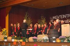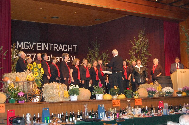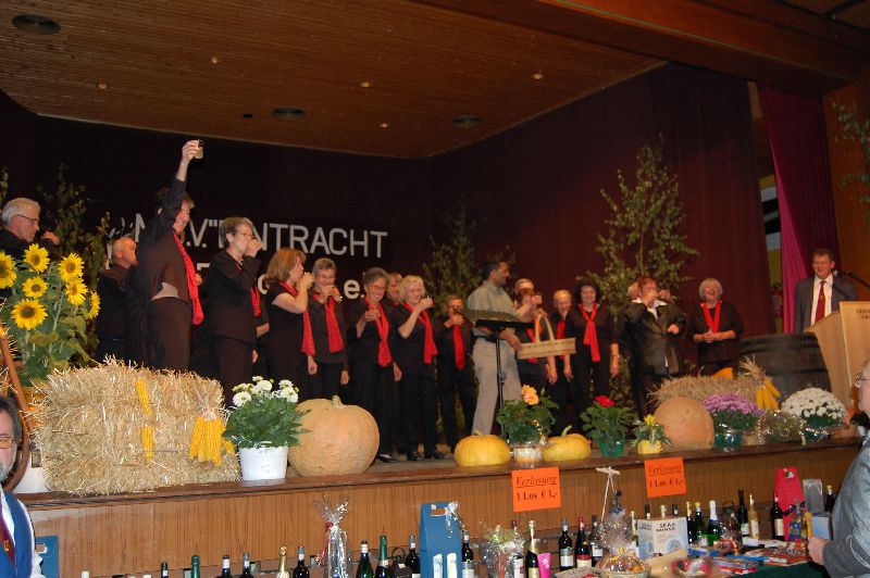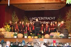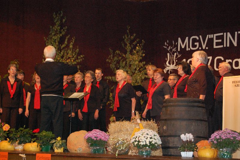 Am Samstag, dem 09.Oktober, war der gemischte Chor beim MGV Eintracht Graben zu Gast. Der Gastgeber feierte sein „Weinlesefest“ in der herbstlich geschmückten Festhalle in Graben. Unter der Leitung unseres Dirigenten Hans Vogt unterhielten wir die Festbesucher mit zwei schwungvollen brasilianischen Liedern, dem irischen Volkslied „Einsame Rose“ und dem Weinlied „In Vino veritas“. Die Solopassagen sangen Karin Fürniß, Klaus Reinhardt und Rainer Ritz. Nach dem gelungenen Vortrag durften wir auf der Bühne den süßen neuen Wein kosten. Wie jedes Jahr gingen auch wieder einige Gewinne aus der Tombola mit nach Hochstetten.