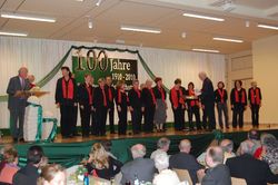 Am Freitag den 14. Mai war die Chorgruppe „In´takt“ in die Sängerhalle in Friedrichstal eingeladen. Der GV Sängerbund Friedrichstal feierte an dem Wochenende sein 100 jähriges Bestehen, am Freitagabend gehörte die Bühne den modernen Chören. Mit Chorleiter Hans Vogt brachten wir drei Lieder aus unserem Konzertprogramm zum Vortrag, die musikalische Begleitung hatte Eberhard Halter mit seiner Gitarre übernommen. Davor hatten wir dem Gastgeber als Überraschung mit einem Geburtstagsständchen, nach einer Melodie von Mozart, zu seinem Jubiläum gratuliert.