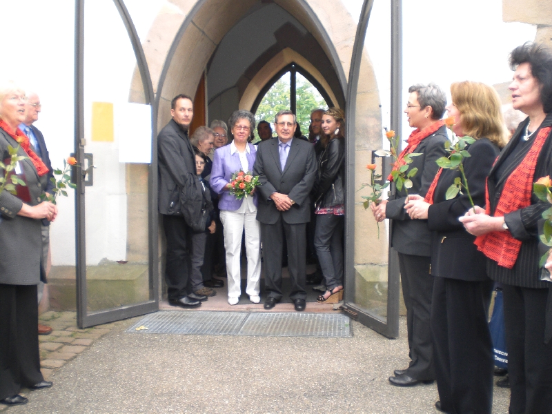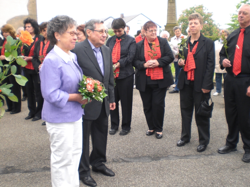 Am Samstag den 08. Mai feierten unsere aktiven Ehrenmitglieder Sieglinde und Helmut Meinzer ihre goldene Hochzeit. Für den gemischten Chor war es eine Ehre beim Gottesdienst in der evangelischen Kirche in Hochstetten für das goldene Hochzeitspaar zu singen. Freudig bewegt sangen wir die Lieder „Lobe den Herren“ und „Ich bete an die Macht der Liebe“. Chorleiter Hans Vogt zeigte seine Wertschätzung für die beiden treuen Chormitglieder mit einem ergreifenden Solovortrag, dabei wurde er von Sigrid Osenberg an der Orgel begleitet. Nach dem Gottesdienst standen die Chormitglieder mit Rosen in den Händen Spalier und sangen spontan den irischen Segenwunsch als das goldene Paar die Kirche verlies. Vorsitzender Klaus Reinhardt gratulierte und überreichte als Geschenk des Vereins ein Rosenbäumchen und einen kulinarischen Gutschein. Er betonte in seiner Ansprache die langjährige Vereinstreue, Zuverlässigkeit und Hilfsbereitschaft von Sieglinde und Helmut.