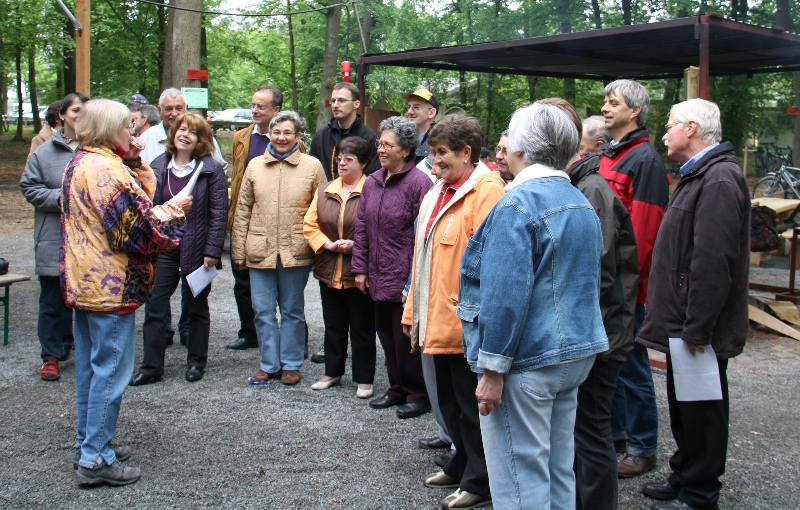 In der Woche vor unserem Konzert hatten wir nicht nur viel zu organisieren, es standen auch noch zwei Auftritte im Terminplan. Der erste war für den gemischten Chor am Vatertag beim Liederkranz Graben. Wie jedes Jahr, veranstaltete der Gastgeber ein Grillfest im Grabener Wald, wieder einmal bei schlechtem Wetter. Mit Vizedirigentin Reinhilde Fürniß sangen wir zur Mittagszeit drei Lieder unter freiem Himmel für die Festbesucher. Multitalent Reinhilde sang beim Dirigieren noch im Soloquartett von: “Wie herrlich ist´s im Wald“ mit. Der Vorsitzende des Gastgebers fotografierte und bedankte sich für unseren Besuch, danach ließen wir uns Schwein vom Spieß und Sauerkraut schmecken.