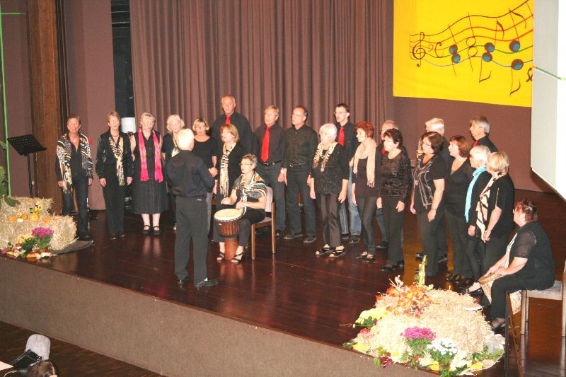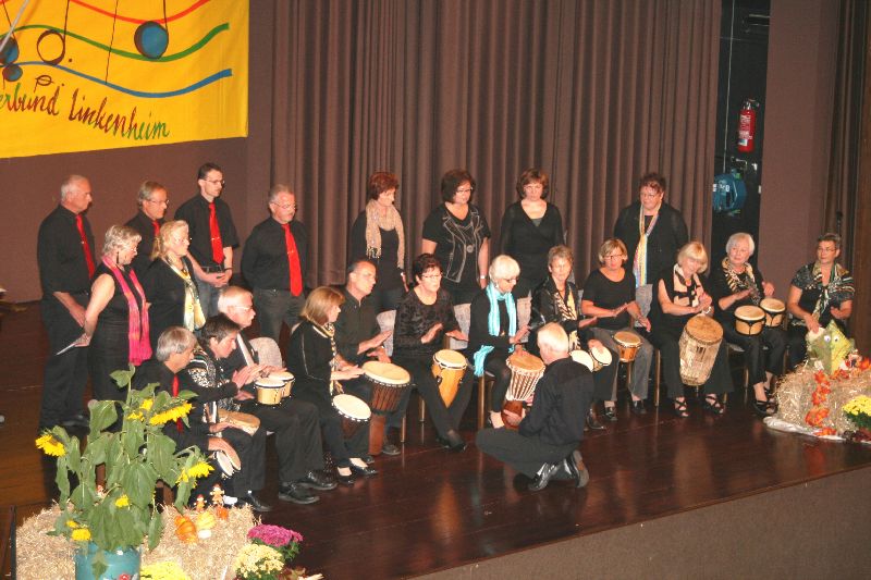 Am Sonntag, dem 19. September 2010, war die Chorgruppe Intakt zum Freundschaftssingen beim Sängerbund Linkenheim eingeladen. Unser Bruderverein feierte sein Sängerfest dieses Jahr als Herbstfest im Bürgerhaus Linkenheim, zum Singen eine ideale Umgebung. Mit Chorleiter Hans Vogt trafen wir uns eine halbe Stunde vor Beginn, so konnten wir uns in aller Ruhe im Keller einsingen. Für unsere drei Afrikanischen Lieder hatten wir auch die dazu gehörigen Trommeln im Gepäck, der Rhythmus wurde noch einmal kurz abgestimmt. Nach dem Gastgeber durften wir als zweiter Gastchor auf die Bühne, bei „Syahamba“ und „Nkosi sikeleli Afrika“ begleiteten Ursula Halter und Brigitte Lang auf der Djembe. Die ganze Trommelcombo bewies Rhythmusgefühl bei „Digbo“, einem traditionellen Song aus Togo. Als a-capella Lied präsentierten wir „Memory“, den beliebten Hit aus dem Musical „Cats“.