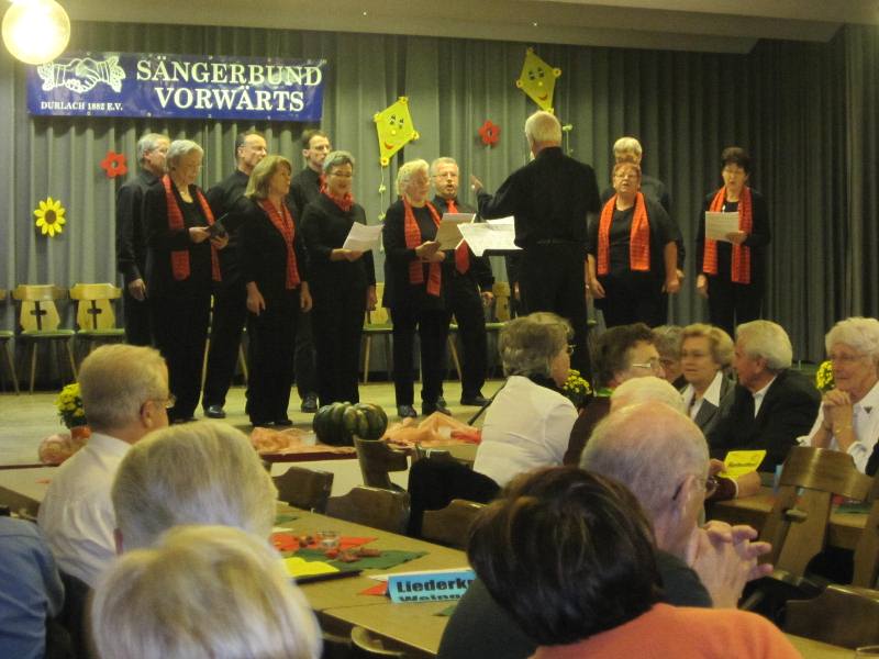 Der Sängerbund 1882 Vorwärts Durlach feierte am Samstag, dem 23. Oktober 2010, sein traditionelles Herbstfest im Sängerheim in Durlach Aue. Mit Beiträgen der Durlacher Hausmusik hatte das Fest schon um 16 Uhr begonnen. Die intensiven Vorbereitungen unseres Schlachtfests 2010 und andere Aktivitäten verhinderten den Auftritt unserer Chorgruppe Intakt in voller Besetzung. Der Beifall zeigte, dass Intakt auch in kleiner Besetzung gut singen kann.