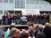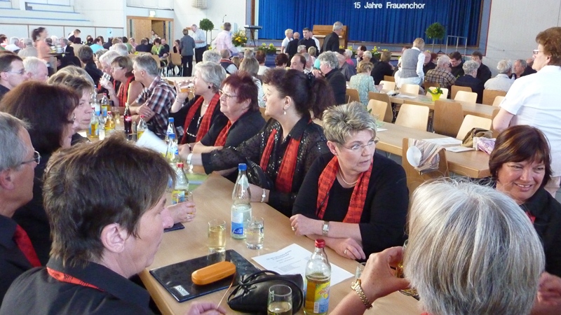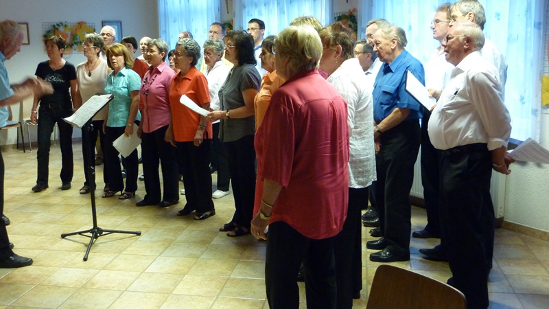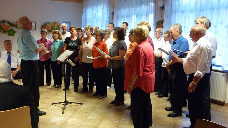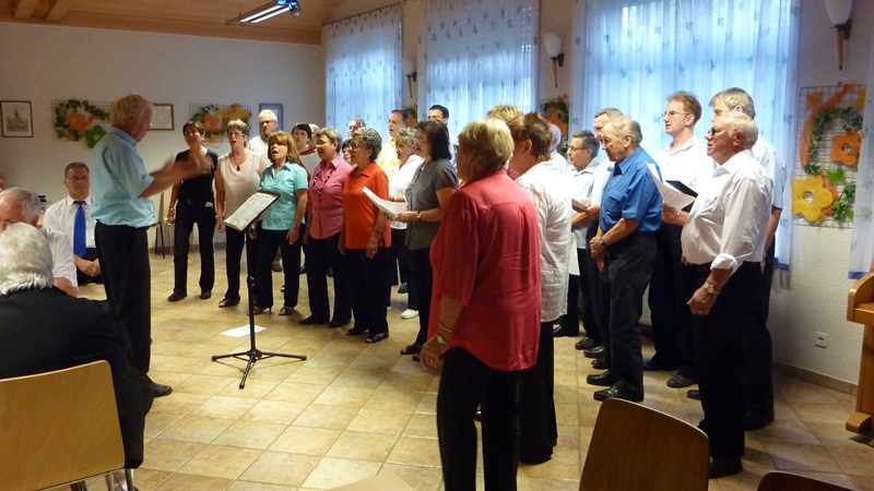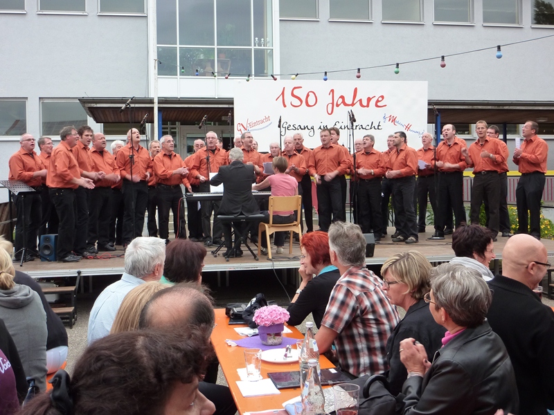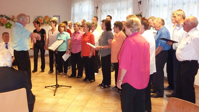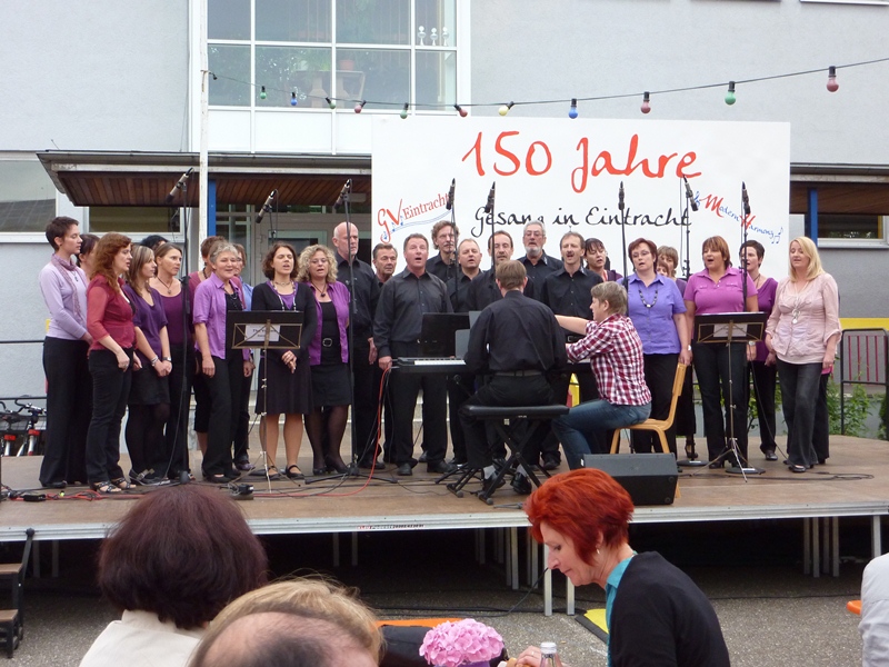 Der Gesangverein Germania Staffort feiert 2011 sein 125-jähriges Bestehen. Aus diesem Anlass waren wir am 26. Juni zum Freundschaftssingen eingeladen. Es war nun der Traditionschor an der Reihe. In der festlich geschmückten Dreschhalle sangen wir vier Lieder. Premiere hatten wir mit „Steh‘n zwei Stern am hohen Himmel“, „La Montanara“ und „Ich weiß nicht, was soll es bedeuten“. Als Schlusslied wählte unser Dirigent Hans Vogt das flotte „Tanze Samba mein Mädchen“. Die Vorträge klappten alle sehr gut und wir ernteten reichlich Beifall und Lob bezüglich unseres guten Chorklangs.