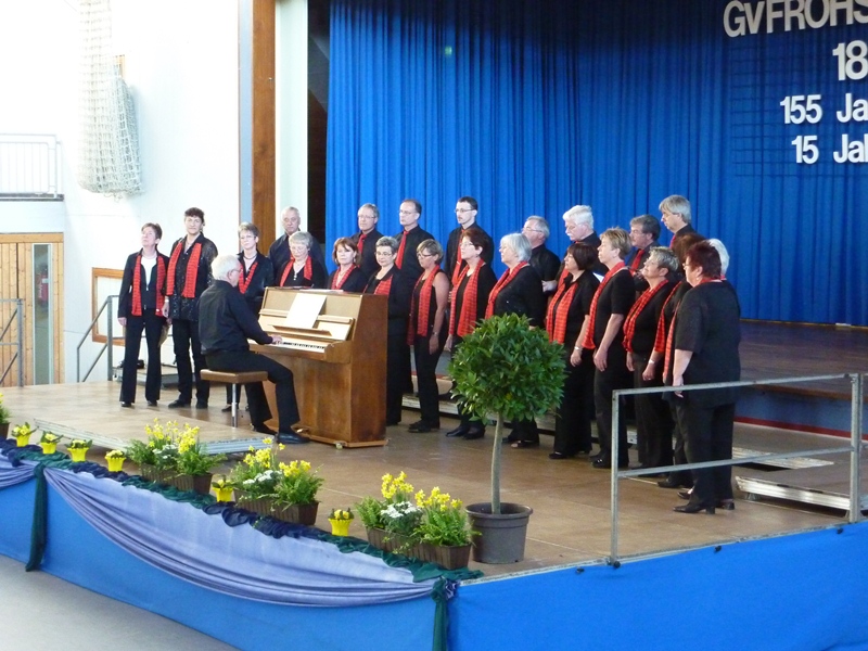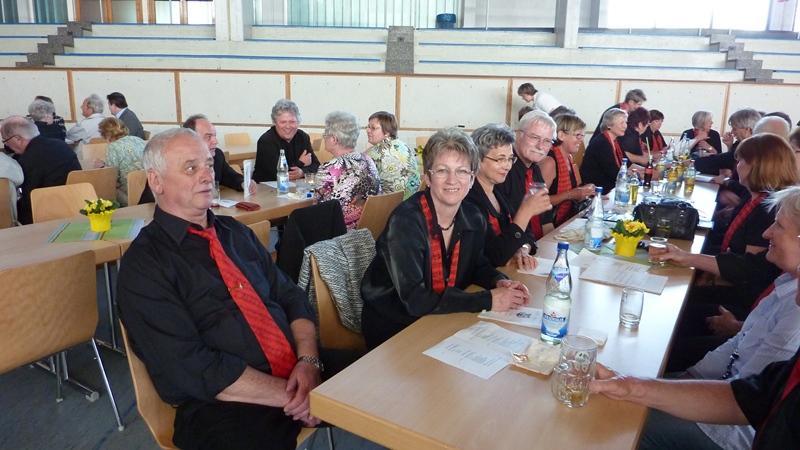 Schade, denn es waren sehr abwechslungsreiche Darbietungen der neun auftretenden Chöre. Trotz der schlechten Akustik in der Halle präsentierten wir unsere vier Songs mit viel Engagement, Chorleiter Hans Vogt begleitete zwei davon am Klavier.
