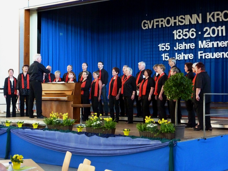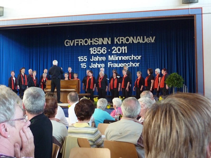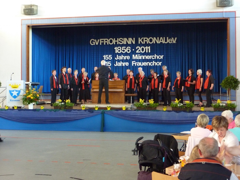 Am Sonntag den 10. April fuhr die Chorgruppe Intakt zum ersten Auftritt in diesem Jahr. Der Frohsinn Kronau hatte zu einem Abend der modernen Chöre in die Mehrzweckhalle in Kronau eingeladen. Wir trafen uns eine halbe Stunde vor Beginn zum Einsingen, leider hatten nicht alle Chöre diese gute Idee. Das ständige Kommen und Gehen der Gastchöre und dadurch eine manchmal halbleere Halle ließ keine rechte Stimmung aufkommen. Kein Vergleich mit dem Abend der modernen Chöre bei unserem Sängerfest.