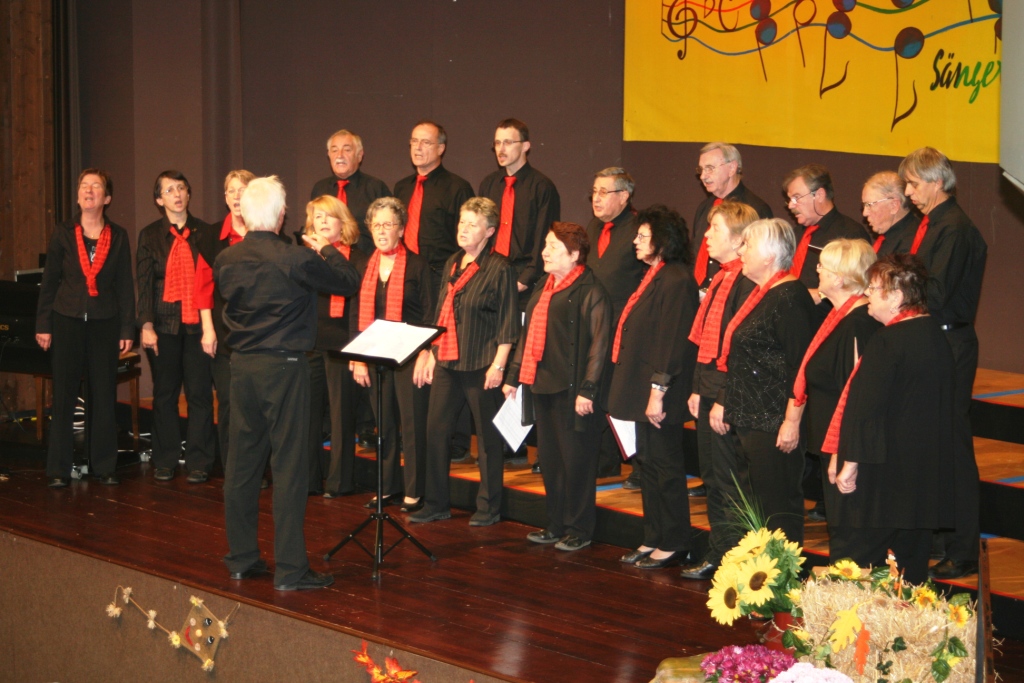 Ein Auftritt auf der Bühne im Bürgerhaus in Linkenheim ist immer ein ganz besonderes Erlebnis. Dieses Vergnügen hatte unser Traditionschor am Sonntag den 16. Oktober beim Chorfestival des Sängerbundes Linkenheim. Chorleiter Hans Vogt hatte eine interessante Mischung von Liedern zusammengestellt, von „Audite Silete“, einer Weise aus dem 16. Jahrhundert über „La Cucaracha“ bis zu „Syiahamba“ aus Südafrika. Passend für den Herbst wurde auch die „Einsame