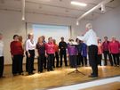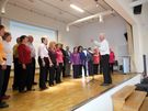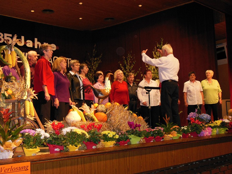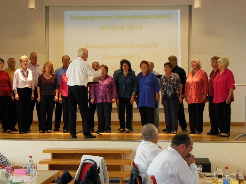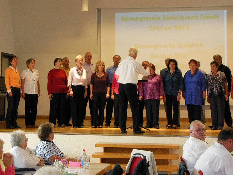 Gut eingesungen vom Probentag am Samstag, trafen sich die Aktiven des traditionellen Chores am Sonntagvormittag in der Speechahalle in Spöck. Der Liederkranz Spöck feierte in der Halle sein Herbstfest und hatte uns zum musikalischen Frühschoppen eingeladen. Wir präsentierten eine unterhaltsame Mischung aus besinnlichen und schwungvollen Liedern, die beim Publikum sehr gut ankamen. Auch Chorleiter Hans Vogt war sehr zufrieden, so konnten wir uns gut gelaunt das Mittagessen schmecken lassen und den anderen Chören lauschen.