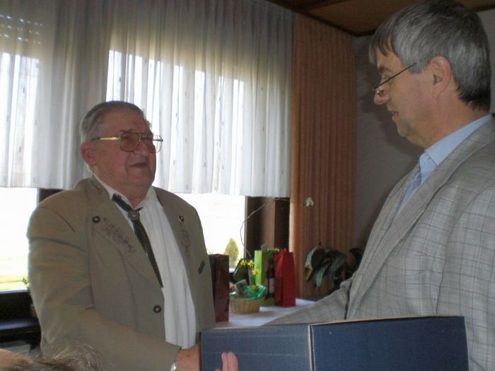 Am Sonntag den 03. März 2013 feierte unser Ehrenmitglied Eberhard Bloy seinen 80. Geburtstag im Turnhallenrestaurant. Mit Chorleiter Hans Vogt sang der traditionelle Chor einige Lieder als Geburtstagsständchen. Vorsitzender Klaus Reinhardt gratulierte und erinnerte in seiner Ansprache an die aktive Zeit des Jubilars und seine fachkundige Hilfe beim Umbau des Sängerheims. Eberhard bedankte sich für die Liedvorträge und lud uns zu Speis und Trank ein. Er blickte mit Humor auf seine Zeit als Sänger zurück, die neumodischen Atemübungen zu Beginn der Singstunde waren damals befremdlich für seine älteren Sangeskameraden.