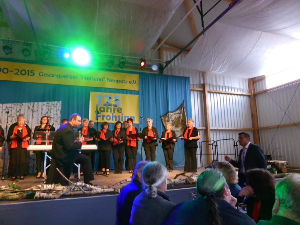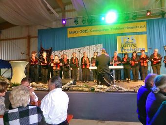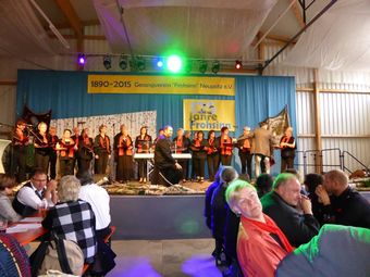Am Samstag 20.06. veranstaltete der Frohsinn Neupotz anlässlich seines 125-jährigen Bestehens einen "Abend der Modernen Chöre" an dem auch der Chor der Einigkeit teilnahm. In einer großen aber trotzdem urigen Halle auf dem Schmiedhof fand das Singen in echter Pfälzer-Land-Atmosphäre statt. Mit den von Aldo Martinez neu einstudierten Liedern passten wir optimal in das Programm. Was man mit Hilfe von Technik alles machen kann, konnten wir dann bei einigen wirklich jungen Chören bestaunen. Manche Sachen kommen dabei schon fast professionell rüber, kosten aber sicher auch mehr als nur eine Probe pro Woche. Bei Pfälzer Wein (wer durfte), leckeren Pfälzer Spezialitäten und supertoller moderner Chormusik durften wir einen wunderschönen Pfälzer Abend verbringen. Leider fuhr auf dem Heimweg die Fähre nicht mehr.