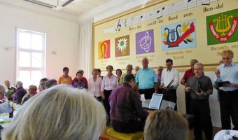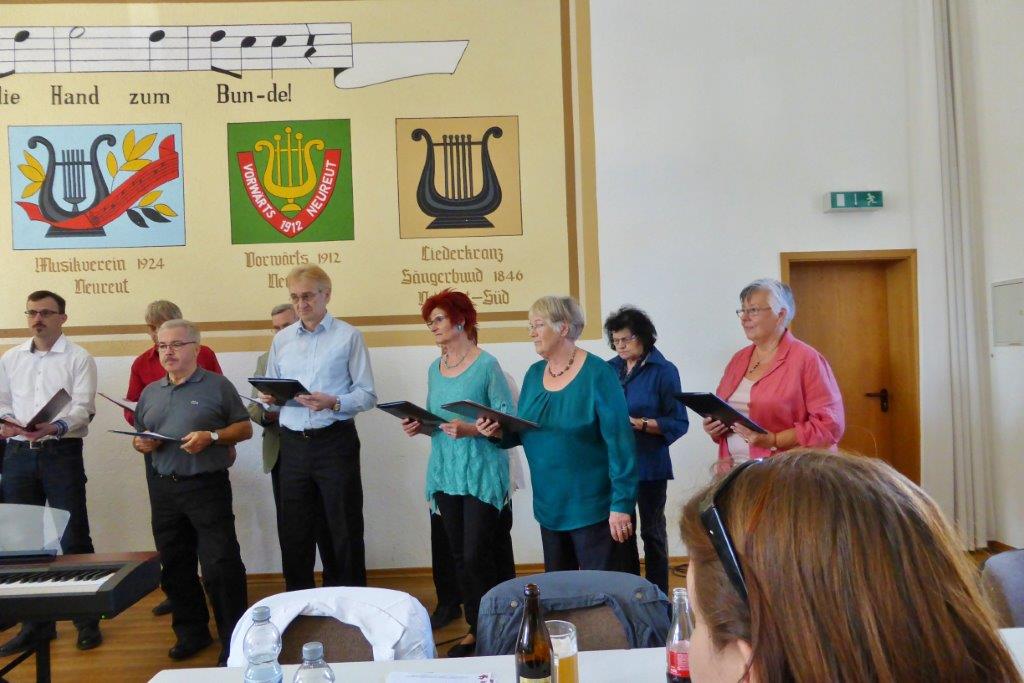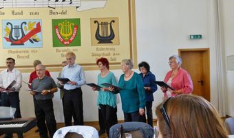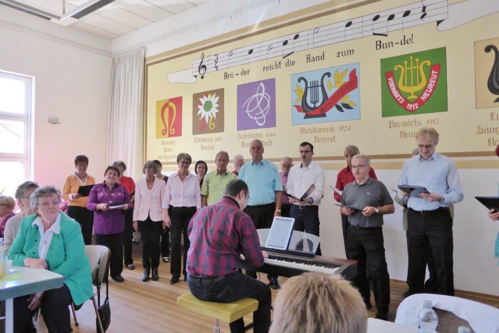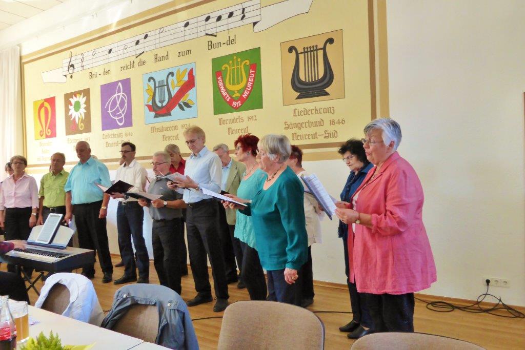 Am Sonntag 10. Mai trafen sich unsere Sängerinnen und Sänger zum Frühlingsfest bei der Eintracht in Spöck. Wir sind dort immer gern gesehene Gäste und haben mit vier Liedern zu einem unterhaltsamen Sängerfest beigetragen. Aldo Martinez hatte zuvor die Lieder noch mit uns eingesungen und uns erklärt, wo die Schwerpunkte liegen und so hatten wir einen passablen Auftritt. Auch andere Gastvereine traten auf und sangen teilweise Lieder aus unserem Repertoire. Es war sehr interessant wie diese anderweitig interpretiert wurden.
