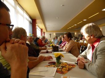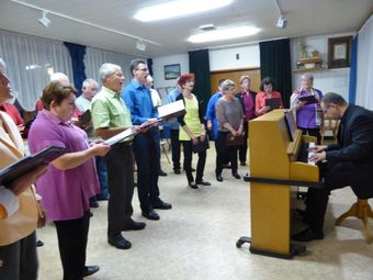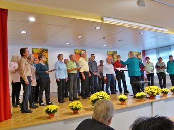 Am Sonntag 11.10. hatten wir unseren Auftritt beim Gesangverein 1864 Untergrombach im katholischen Gemeindezentrum St. Wendelinus durch. Da nicht alle den Weg wussten, wurde ein Treffpunkt für Fahrgemeinschaften ausgemacht. Das hat dann auch gut geklappt und wir fuhren gemeinsam nach Untergrombach. Im herbstlich geschmückten Gemeindezentrum durften wir den Festabend, souverän dirigiert von unserer Reinhilde, eröffnen. Mit unseren gut gemischten Liedern konnten wir das Publikum überzeugen und verbrachten ein paar schöne Stunden in St. Wendelinus. Am Schluss durfte das Publikum sogar den Spöcker Liederkranz bei Sijahamba begleiten, das taten auch wir mit Begeisterung