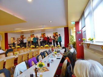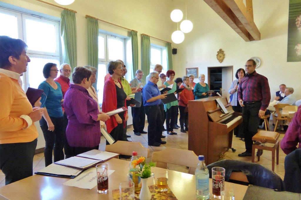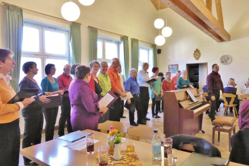 Am Sonntag 27.09.2015 hatten wir gleich zwei Auftritte. Morgens in Spöck begrüßte uns herzlich die erste Vorsitzende Gudrun Süß und wir brachten mit drei flotten Liedern frischen Wind in das Vereinsheim des Liederkranz. Dort wurden wir mit leckeren Speisenangeboten zum Mittagessen verwöhnt.