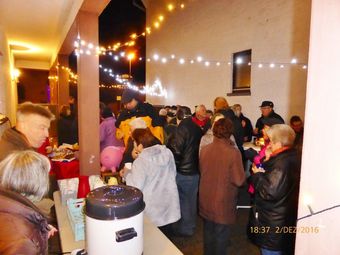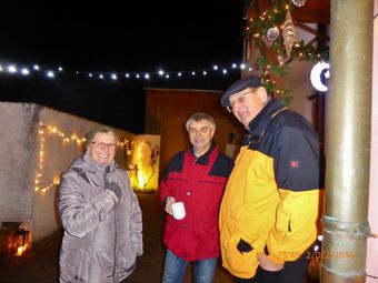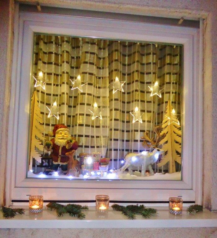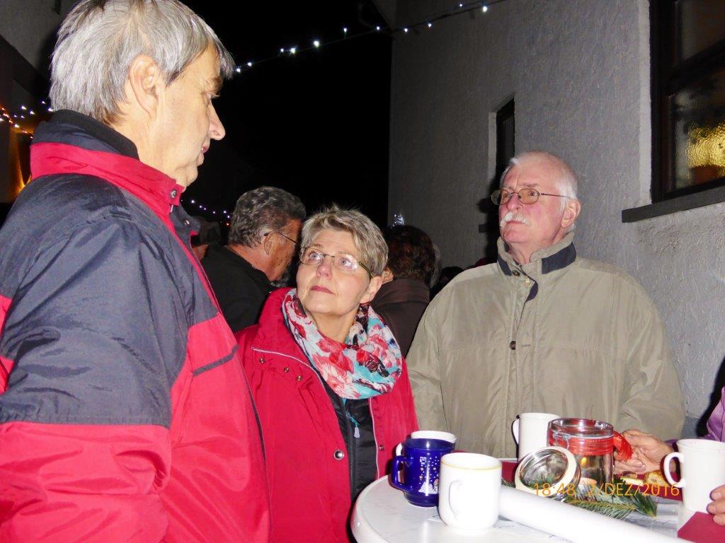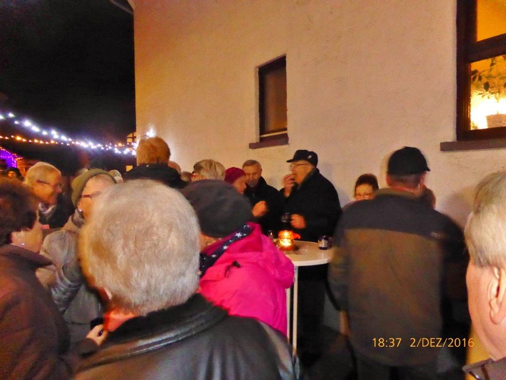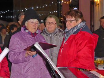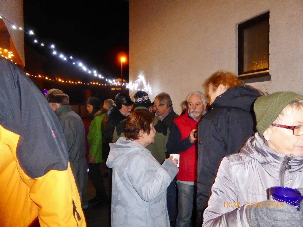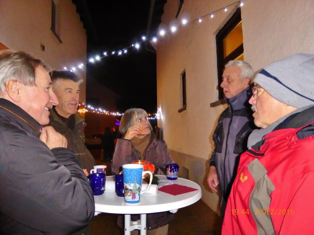 Am 2.12. beteiligte sich unser Chor am Adventsfenster und im Lichter geschmückten Hof von Hannelore und Harald Dürr trafen pünktlich um 18.00 Uhr die ersten Besucher ein. Mit unserem Dirigenten Aldo Martinez sangen wir vier Lieder und dann gemeinsam mit allen Anwesenden weitere Weihnachtslieder. Christa Jung-Wittiger hatte eine schöne Tiergeschichte parat, die sie mit lustigen Zeichnungen mit Hilfe ihres Mannes Wilfried Jung plastisch vortrug. Dann durfte das schön dekorierte Adventsfenster von Hannelore bewundert werden, bevor der Abend mit Glühwein, Punsch und verschiedenem Gebäck eine schöne Fortsetzung fand. Danke an alle, die wieder zum Gelingen dieses Abends beigetragen haben, unseren Besuchern und Familie Dürr, die uns wieder dankenswerter Weise ihren Hof zur Verfügung gestellt hatte.