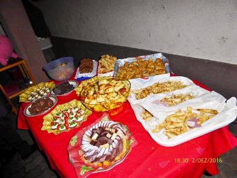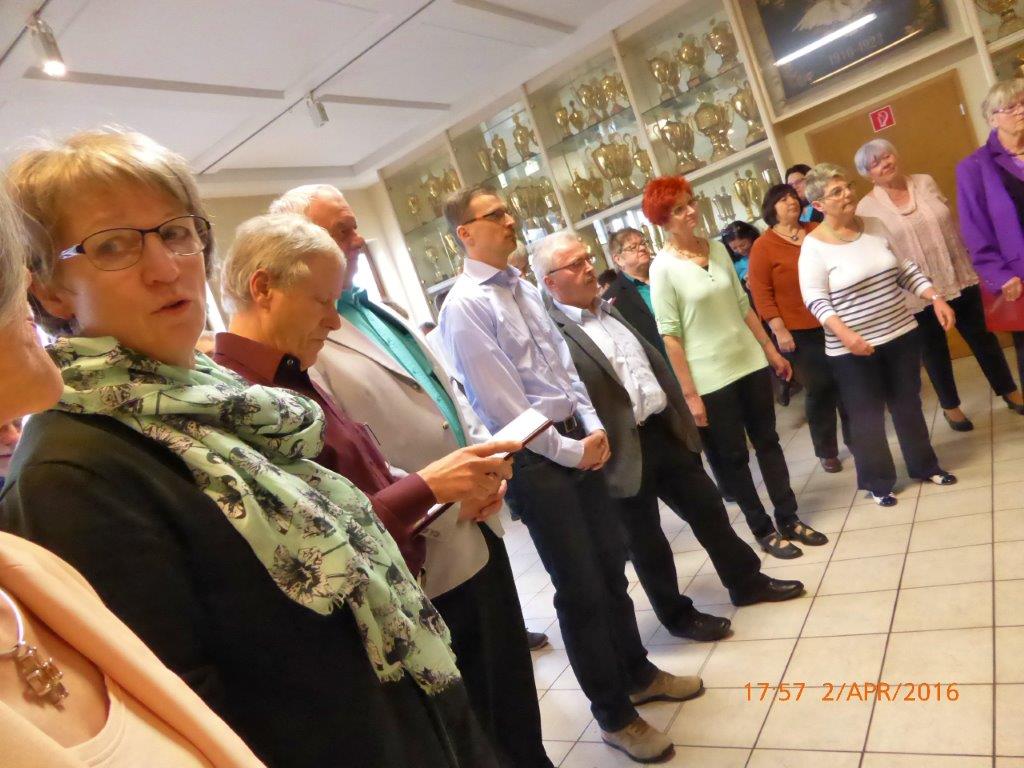 In der Pause gab es eine kulinarische Augenweide: hunderte von kunstvoll gerichteten Canapés warteten darauf, genossen zu werden. Nach dem Sektempfang die zweite gelungene Überraschung! Da haben die Landfrauen Tolles geleistet, genau wie die anderen Verantwortlichen und Ausführenden dieses gelungenen Abends, ein Dankeschön dafür. Für uns war das eine außergewöhnliche Singstunde, die uns in dieser Form großen Spaß gemacht hat.