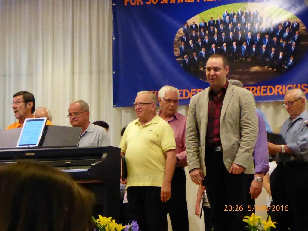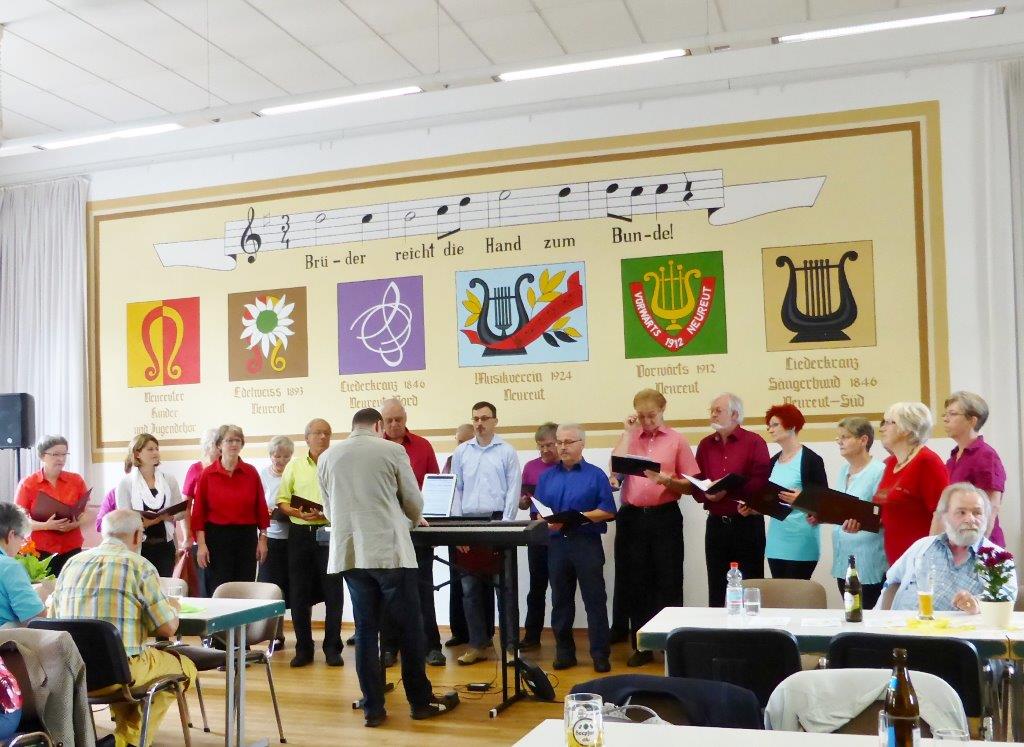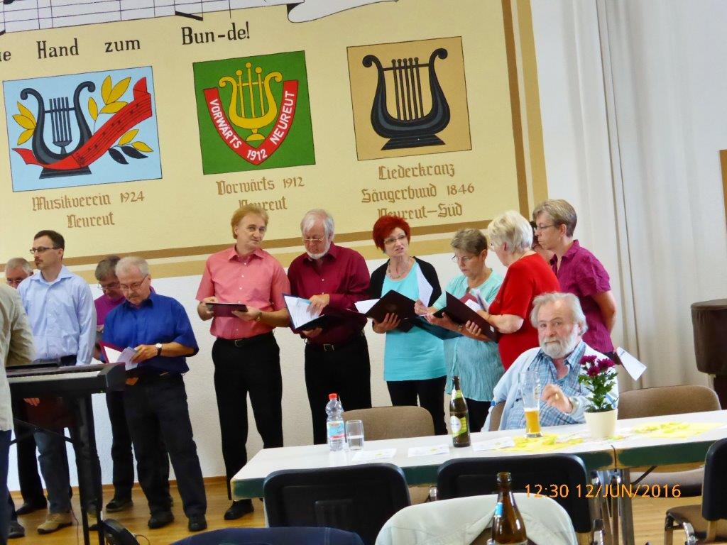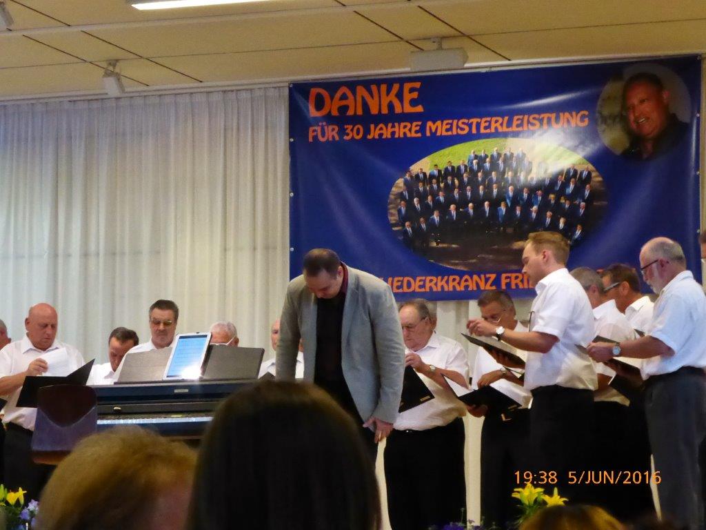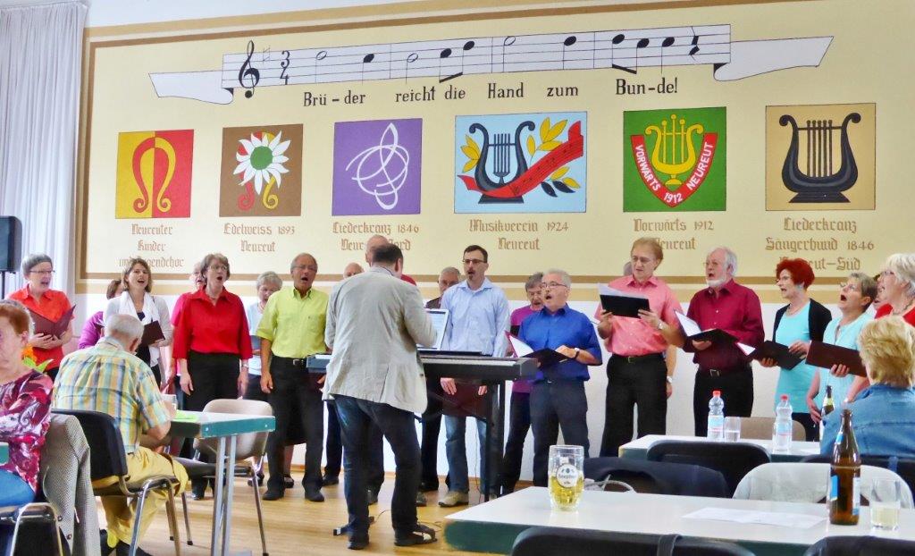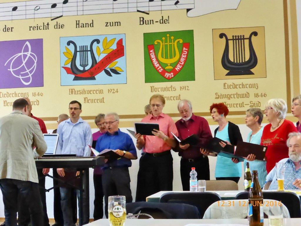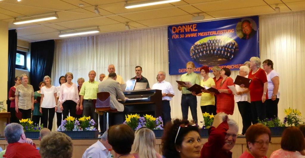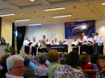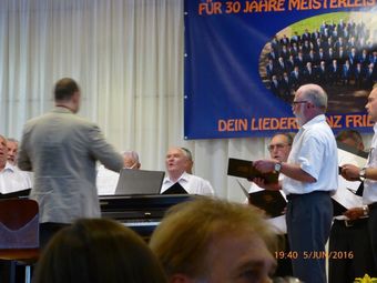 Am Sonntag 05.06. haben wir ab 18.00 Uhr das Sommerfest des Liederkranz' Friedrichstal in der Sängerhalle mitgestaltet. Die Lieder aus unserem Konzert-Repertoire kamen beim Publikum gut an. Allgemein hatte das vorgetragene Liedgut eine interessante Bandbereite. Unser Chorleiter Aldo Martinez war gleich mit drei Chören im Einsatz.