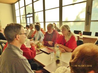 Sonntags (16.10.) ging es gleich früh zum GV Germania 1886 Staffort. Da unser Dirigent noch anderweitig gefragt war, durften wir das Kerwefest in der Mehrzweckhalle mit unserem Liedvortrag eröffnen. Aldo war sehr zufrieden mit uns und wir konnten uns das angebotene Mittagessen schmecken lassen und mit leckerem Kuchen den Sonntagnachmittag versüßen.