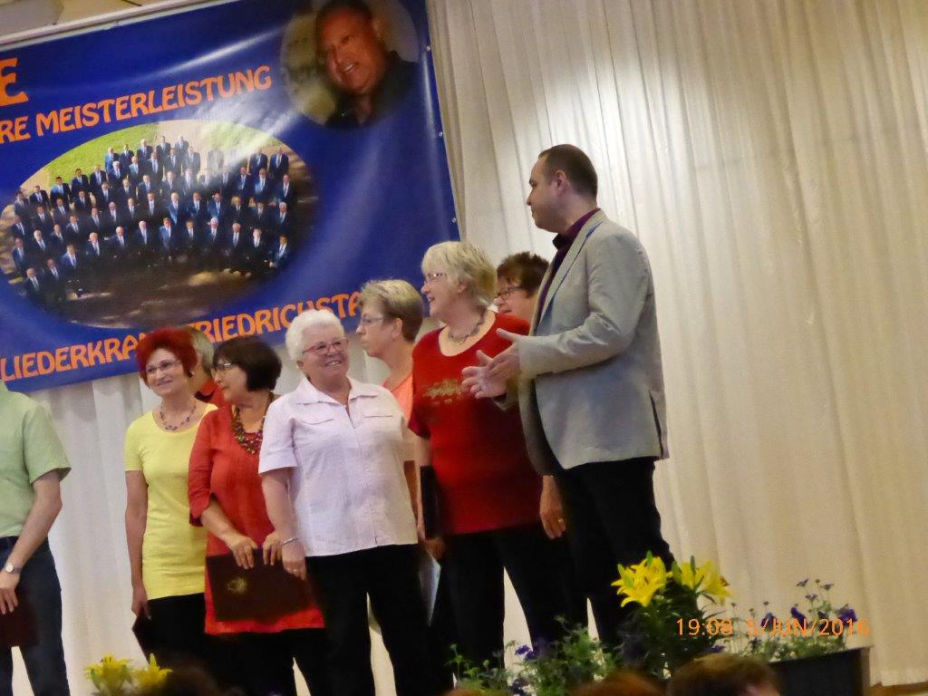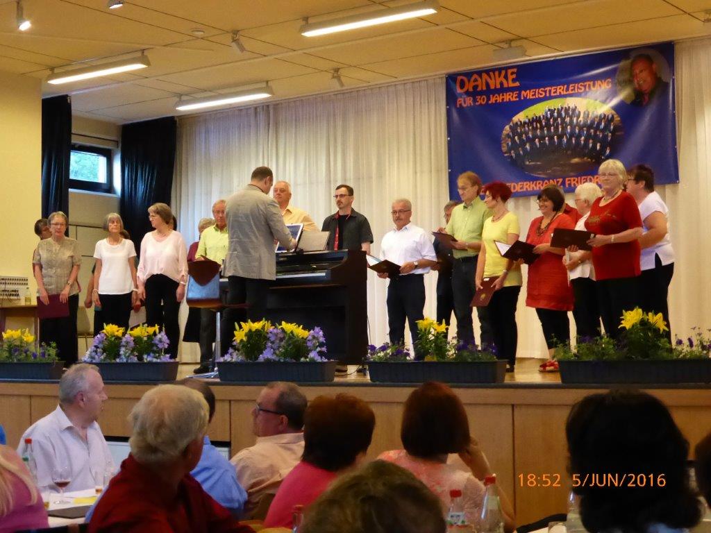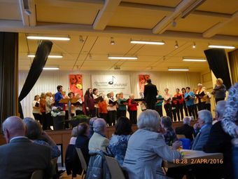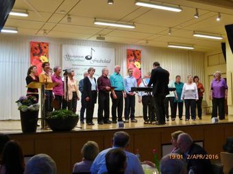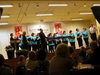 Am Samstag 02.04. hatten wir beim Bunten Abend des GV Sängerbund Friedrichstal unseren ersten öffentlichen Aufttritt 2016. Mit unseren drei Liedern "Only You", "Ich wollte nie erwachsen sein" und "Verlieben,Verloren, Vergessen, Verzeihn..." hinterließen wir trotz dezimierter Chorstärke einen nachhaltigen Eindruck und trugen zu einem abwechslungsreichen Programm bei. Auch einige andere Chöre unseres Dirigenten Aldo Martinez zeigten dort ihr Können. Außerdem wurde von der Laienspielgruppe des Sängerbundes noch ein Theaterstück der Mundartdichterin Else Gorenflo aufgeführt - ein interessanter Abend.