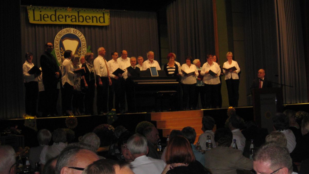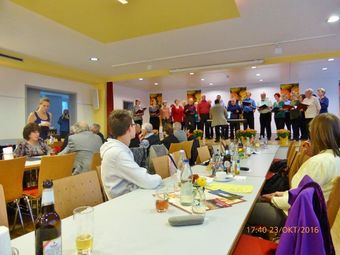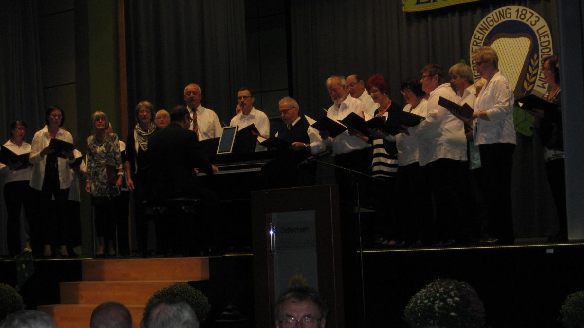 Am Samstag, 15.10. waren wir beim Liederabend der Sängervereinigung 1873 in Liedolsheim eingeladen. In der herbstlich geschmückten Festhalle durften wir als zweiter Gastchor unser Können zeigen. Im vollen Saal kamen meist getragene Lieder zu Gehör. Mit unseren flotten Liedbeiträgen konnten wir das Publikum begeistern, ebenso beeindruckte der Frauenchor aus Rußheim. Der Abend endete mit einem gemeinsamen grandiosen Auftritt des Liedolsheimer- und des Wörther Männerchores, ein gelungener Abschluss!