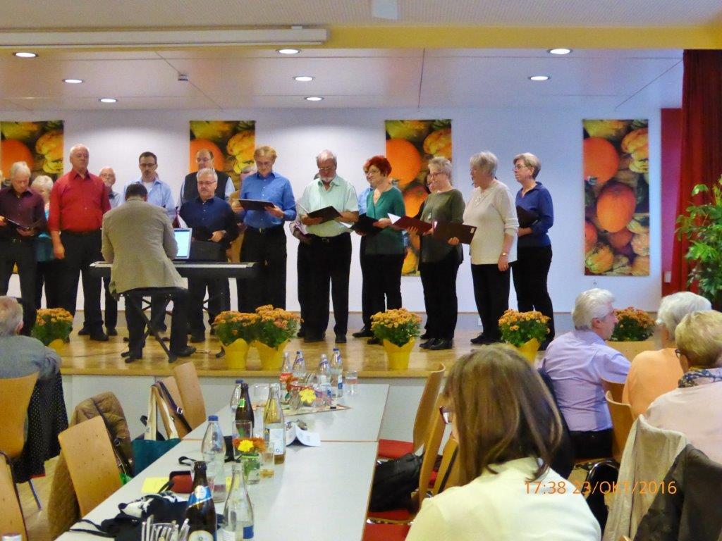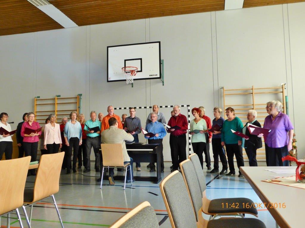 Am Sonntag, 23.10. fuhren wir zum Herbst- und Sängerfest des Gesangverein 1864 Untergrombach. Das Katholische Gemeindezentrum St. Wendelinus war unser Ziel und nach 17.00 Uhr hatten wir dort wieder einen gelungenen Auftritt unter der Leitung von Aldo Martinez. Der Untergrombacher Gesangverein tritt auch gerne zur Bereicherung unseres Sängerfestes im Erlich auf. Dabei punktet unser Sänger und Moderator Rainer Ritz immer wieder mit passenden Kommentaren und lustigen Anekdoten. So ließen die Untergrombacher vom „Spöcker Sänger Fritz“ nun auch einen Witz für Rainer Ritz vortragen. Das Publikum hatte seinen Spaß daran und in geselliger Runde, mit einem guten kulinarischen Angebot, saß man gerne beisammen.