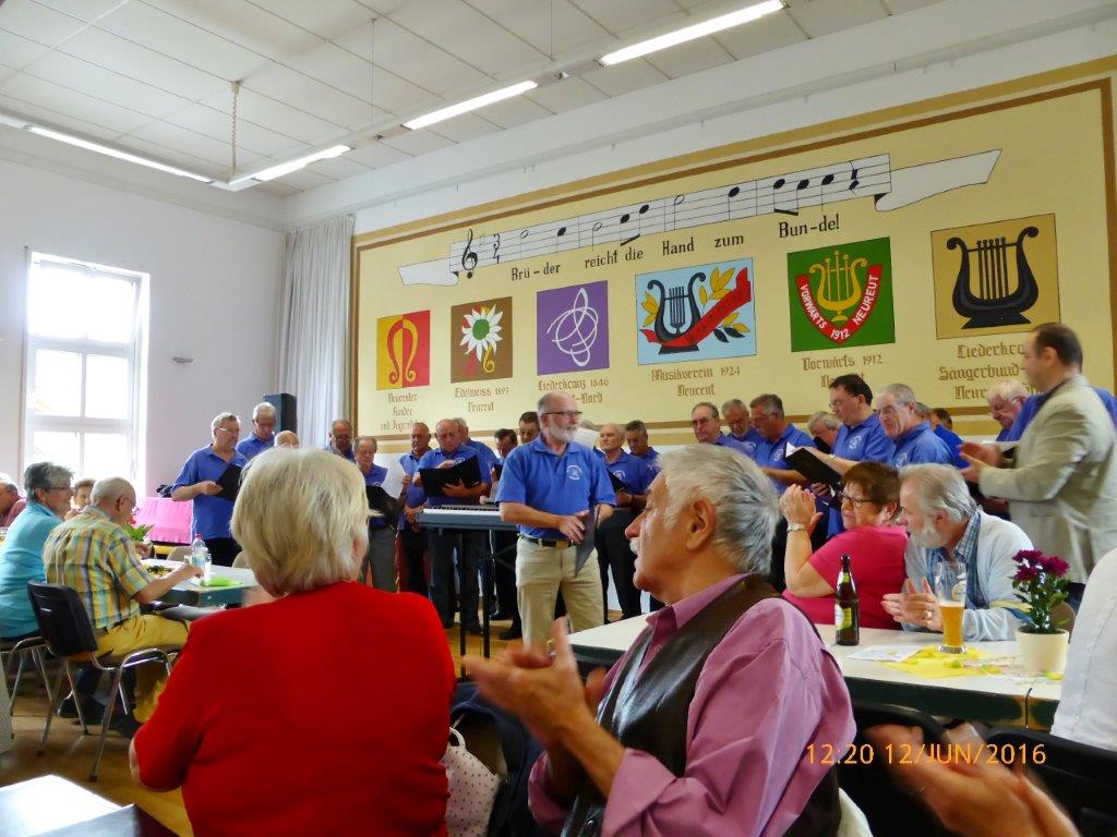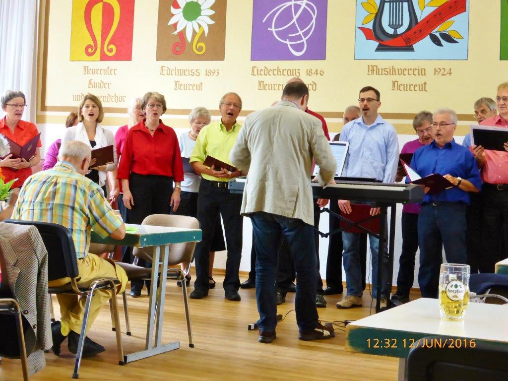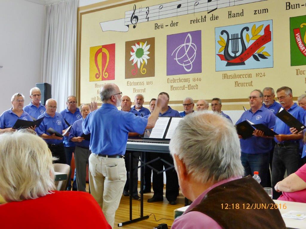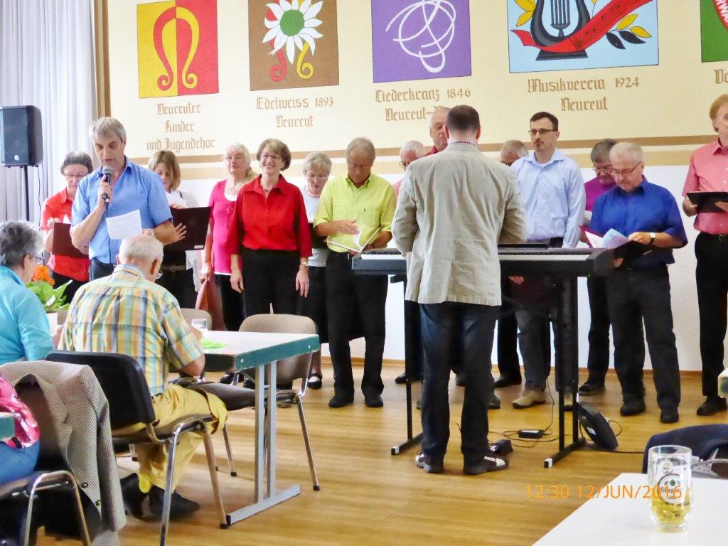Am Sonntag 12.06. waren wir beim Lindenblütenfest des Edelweiß Neureut zu Gast. Unser Auftritt war im Lammsaal, obwohl auch unter den Linden alles hergerichtet war, aber keiner wollte eine Dusche von oben riskieren. So erfreuten wir die Gäste mit unseren Liedbeiträgen im Saal und folgten in geselliger Runde den Darbietungen der anderen Chöre.