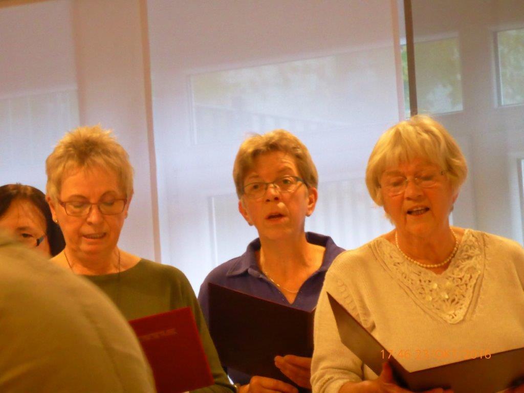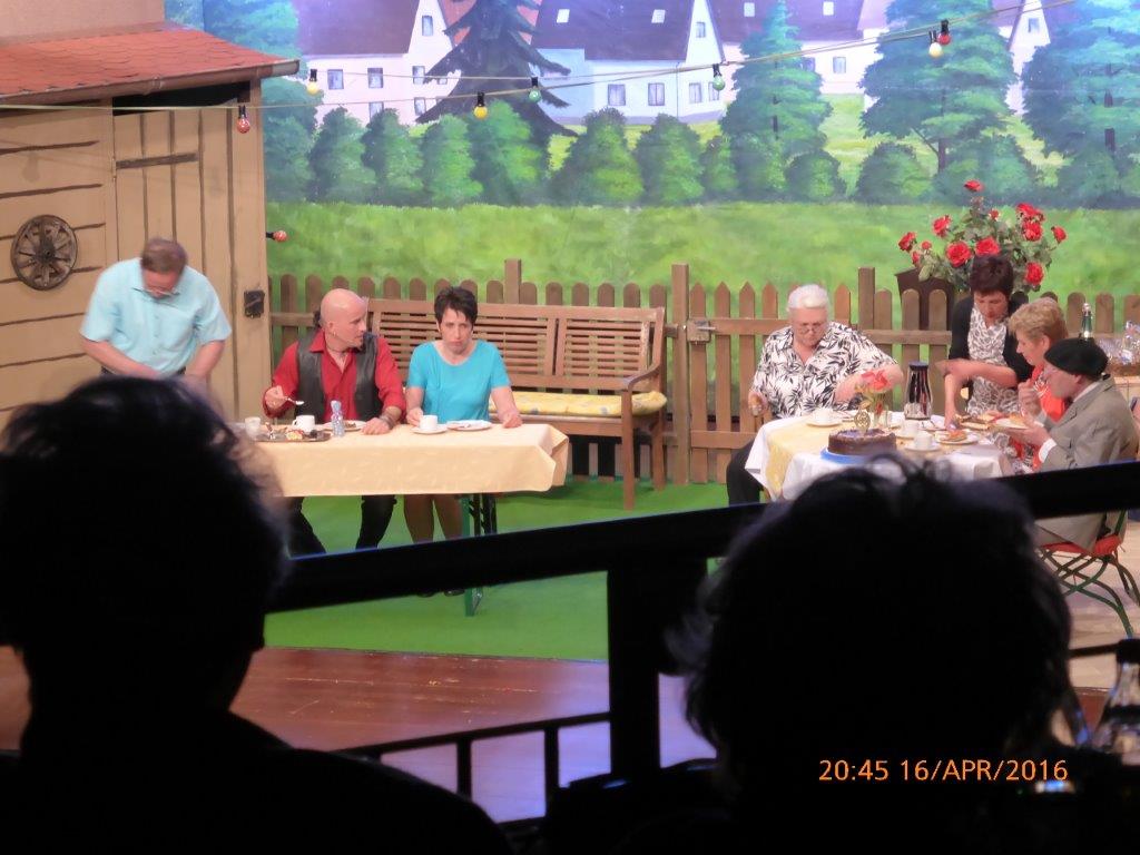 Am Samstagabend waren wir zum 80. Geburtstag von Frieda Ratzel bei der Linkema Schneck eingeladen. Unter der Leitung von Vizedirigentin Reinhilde Fürniß sangen wir das Geburtstagslied und das Jubilate zur allgemeinen Begeisterung. Frieda bedankte sich für dieses musikalische Geschenk, hätte sich jedoch auch gerne ein paar „fetzige Lieder“ gewünscht. Rainer Ritz überraschte die Jubilarin und gratulierte ihr im Namen des Gesangvereins auf seine unübertreffliche Art. Ja, mit ihren 80 Jahren war Frieda sehr gut drauf und überhaupt das ganze Ensemble. Die Theatergruppe beendet mit diesem Stück leider ihre über 30-jährige Spielzeit. Chapeau für diese enorme Leistung, alles Gute weiterhin und danke für die Bewirtung unseres Vereins.