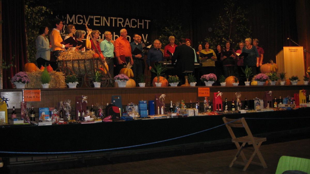 Danach konnten wir uns entspannt zurücklehnen, den weiteren Chören lauschen und die guten Speisen und Getränke genießen. Wie immer gab es in Graben auch eine große Tombola, bei der auch einige von uns stattliche Gewinne abräumten.