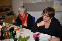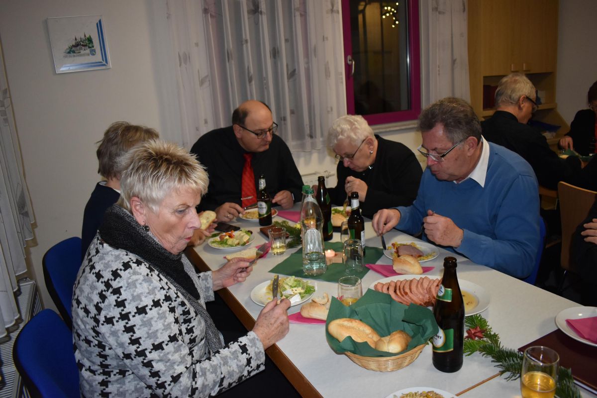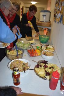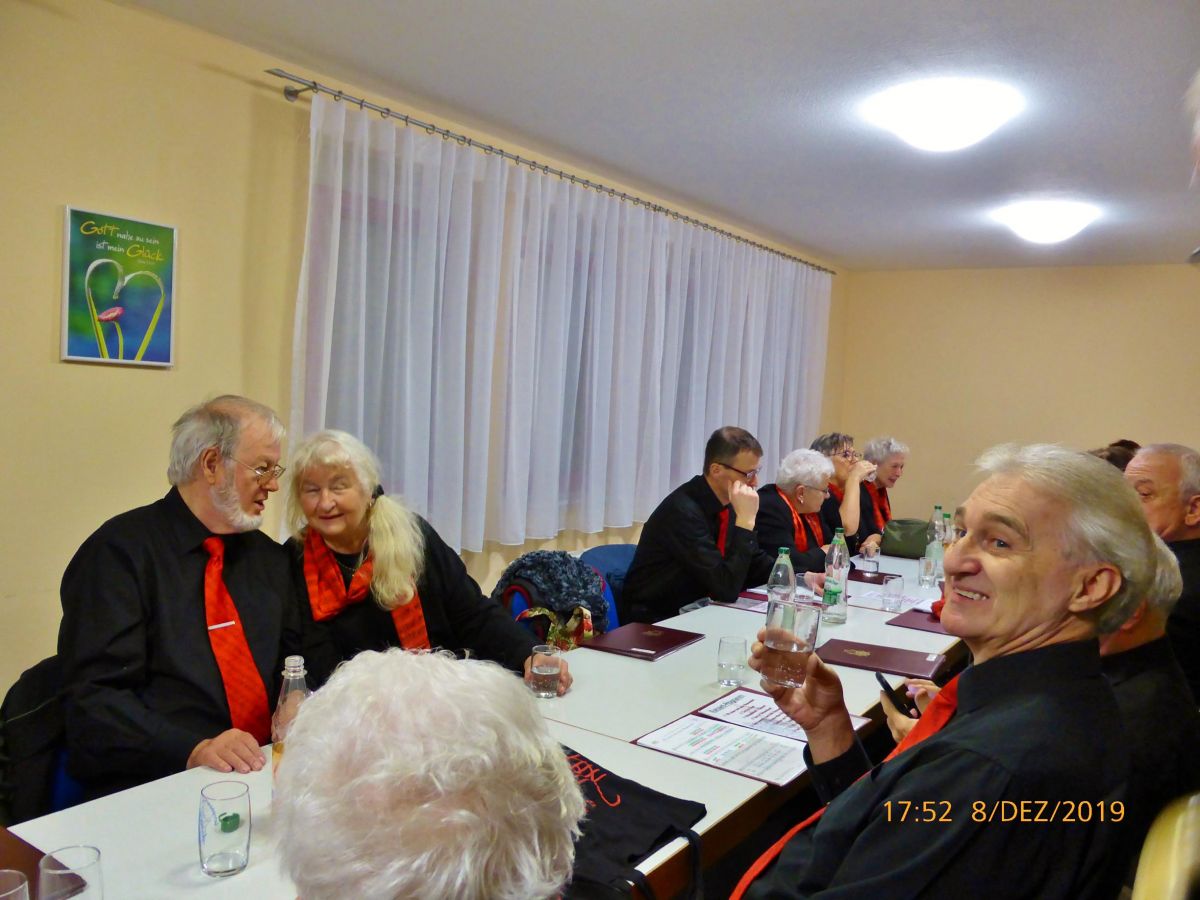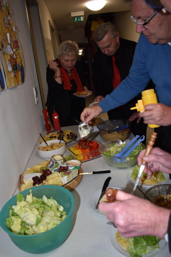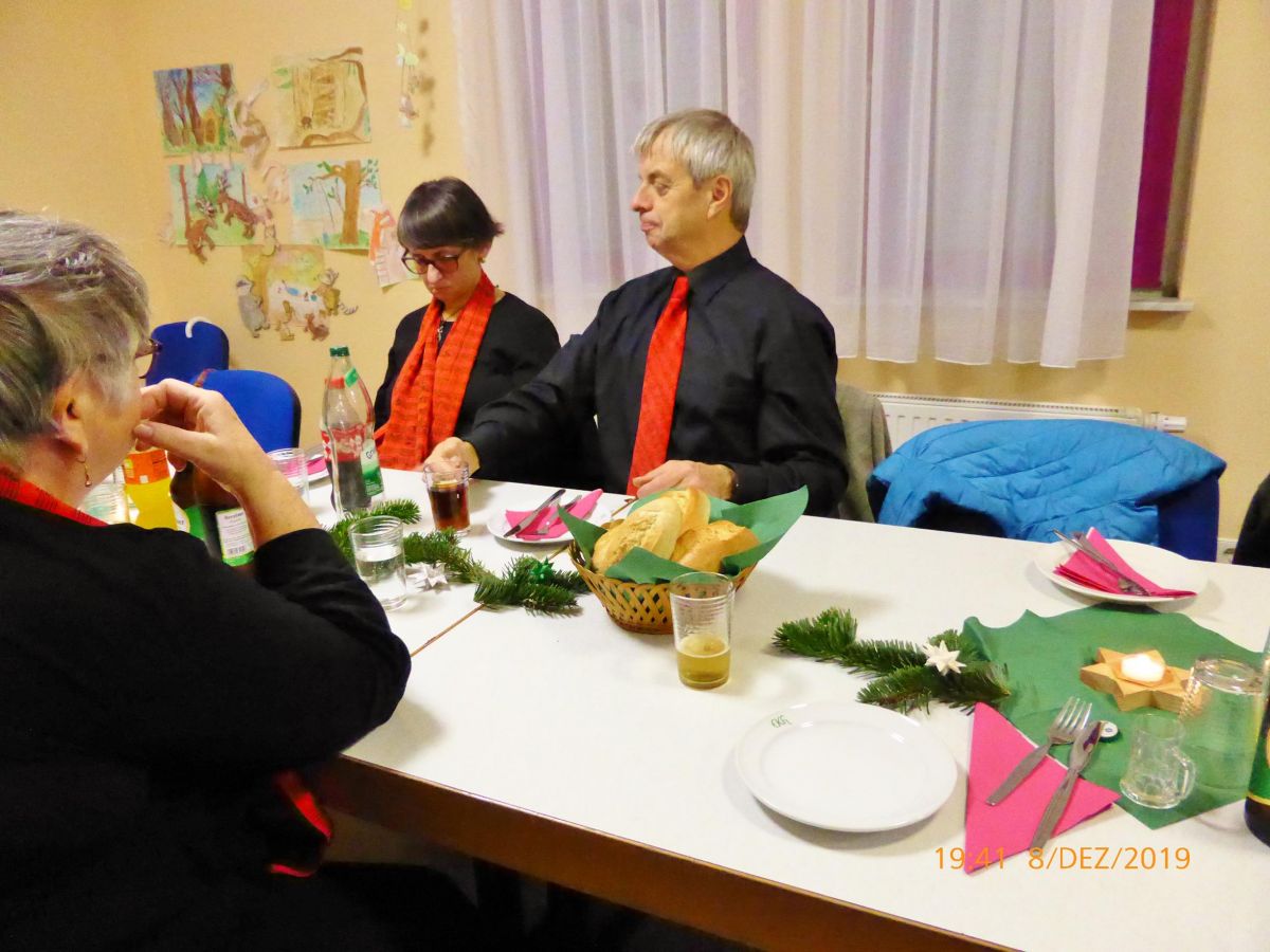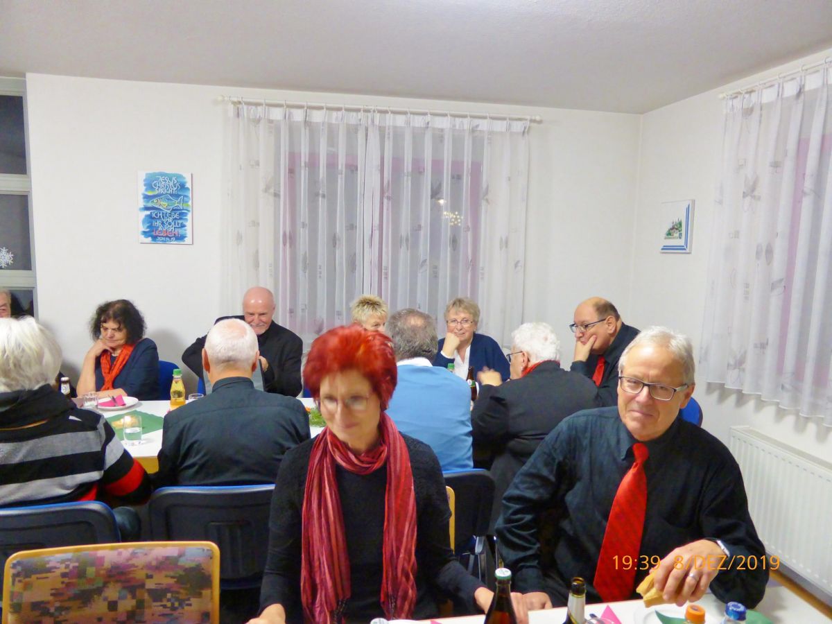 Im Anschluss waren wir von der evangelischen Kirchengemeinde zu einem geselligen Beisammensein mit Verköstigung eingeladen. Für diese großzügige Geste bedanken wir uns ganz herzlich und auch bei allen fleißigen Helferinnen und Helfern, die es uns haben gut gehn lassen. Wir haben im Gemeindehaus schöne Stunden verbracht, bis wir uns auf den Heimweg machten.