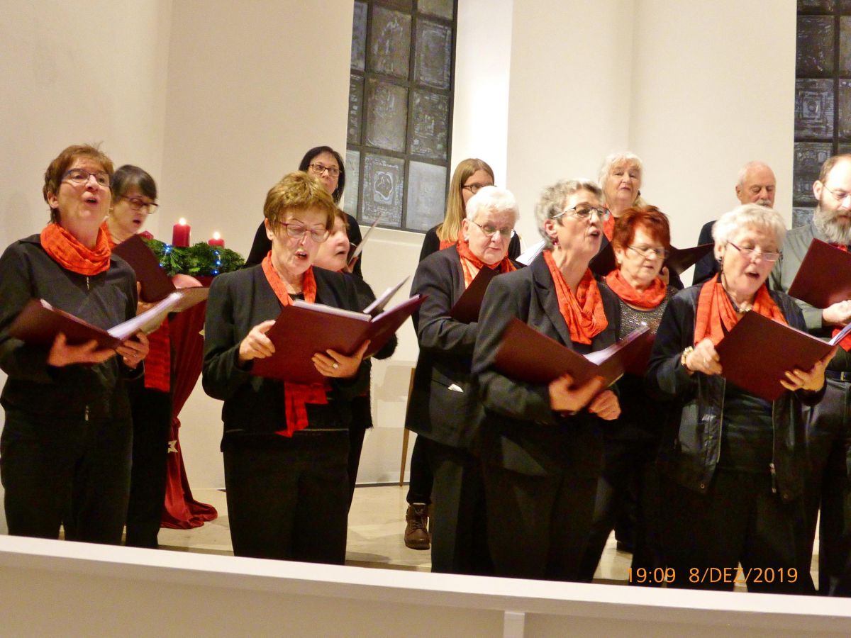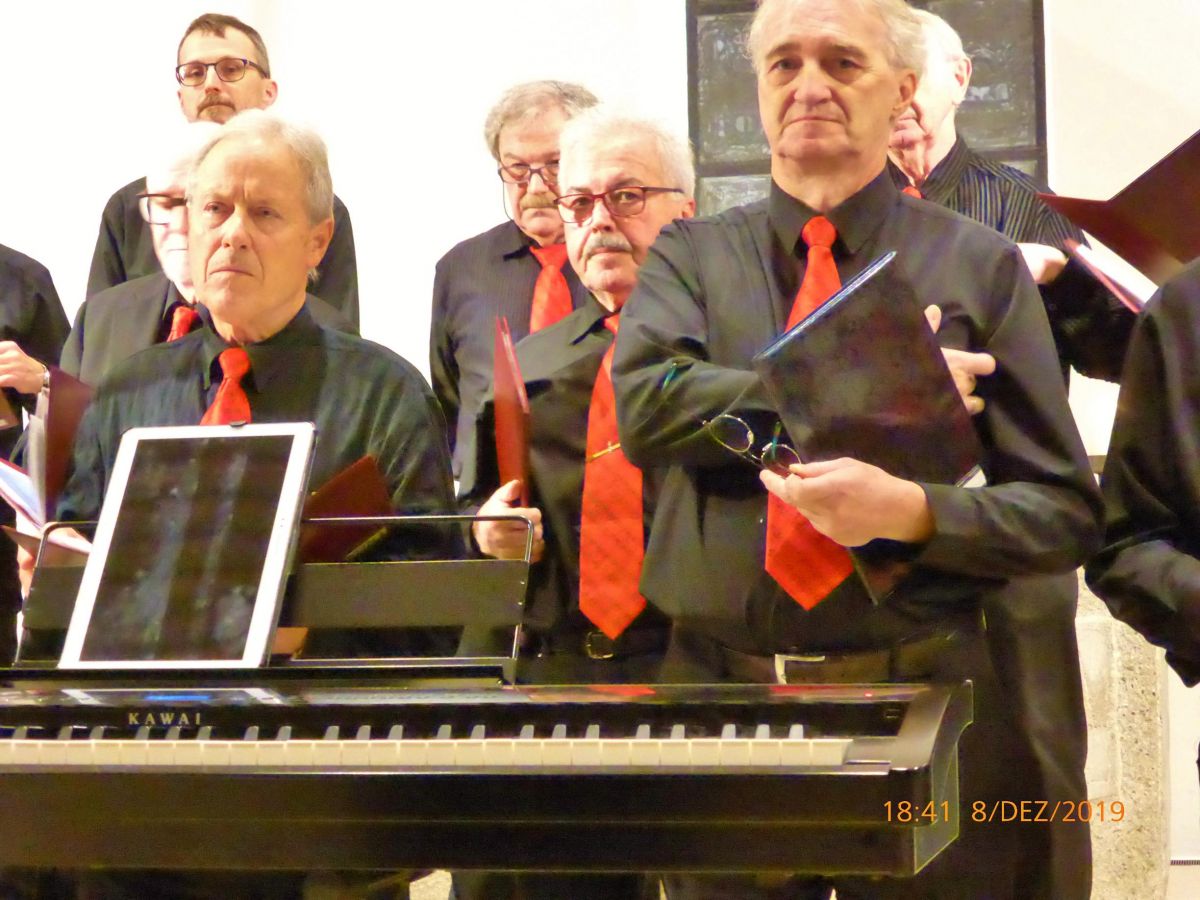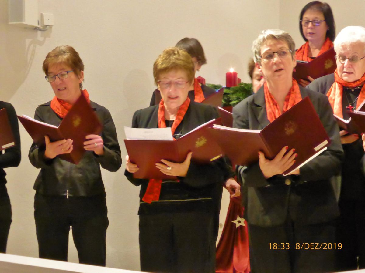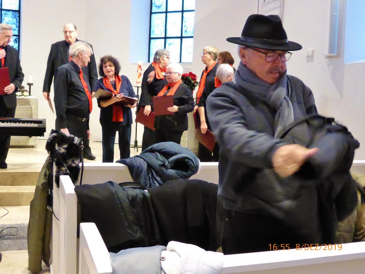 Am Sonntag, 08.12. trafen wir uns um 15.30 Uhr in der wunderschön renovierten Evangelischen Kirche in Hochstetten zur Stellprobe und zum Einsingen. Vor dem Konzert gab es noch eine Erfrischung im evangelischen Gemeindehaus und pünktlich um 17.00 Uhr begann unser Auftritt in der gut besuchten Kirche. Pfarrerin Frau Gholamvisy begrüßte alle Anwesenden herzlich und kündigte auch die jeweiligen Lieder mit ein paar passenden Sätzen an. Es war eine bunte Mischung aus zwölf deutschen und internationalen Liedern, alten und modernen Melodien, die sicher vielen bekannt waren. Dabei waren „Weihnachtszeit, Kinderzeit“, das „Trommellied“, „The first Nowel“, „Feliz Navidad“ und „Calypso Gloria“. Unsere Solistinnen Heidi Winter und Kristin Günter beeindruckten mit „Have yourself a merry little Christmas“ und „Still, still, still“ und Rainer Ritz hatte den Solopart beim „Weihnachts-Gesang – Cantique pour Noel“, alles sehr gut vorgetragen – bravo! Viel zu schnell war das Konzert vorüber, wie auch Pfarrerin Gholamvisy bemerkte. Sie überreichte unserem Dirigenten Aldo Martinez ein kleines Präsent und bedankte sich beim Chor für diesen schönen Auftritt. Statt Eintritt wurde eine Spende zu Gunsten der Kirchenrenovierung erbeten, dafür haben wir uns gerne eingesetzt. Wir bedanken uns auch bei Frau Gholamvisy und bei allen Besuchern unseres Benefizkonzerts, es war uns eine Freude hier aufzutreten.