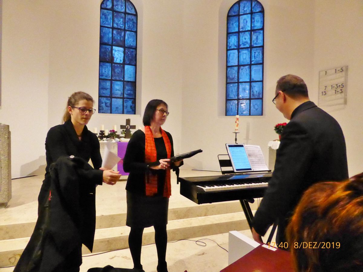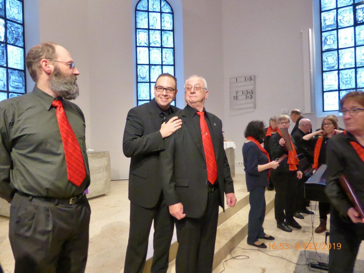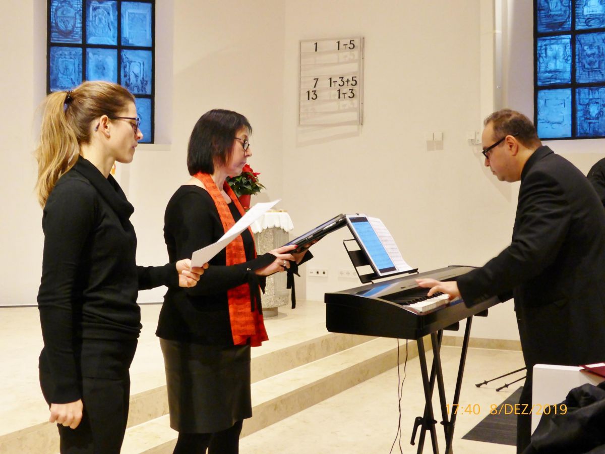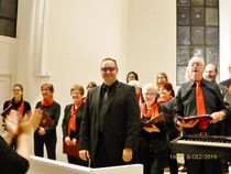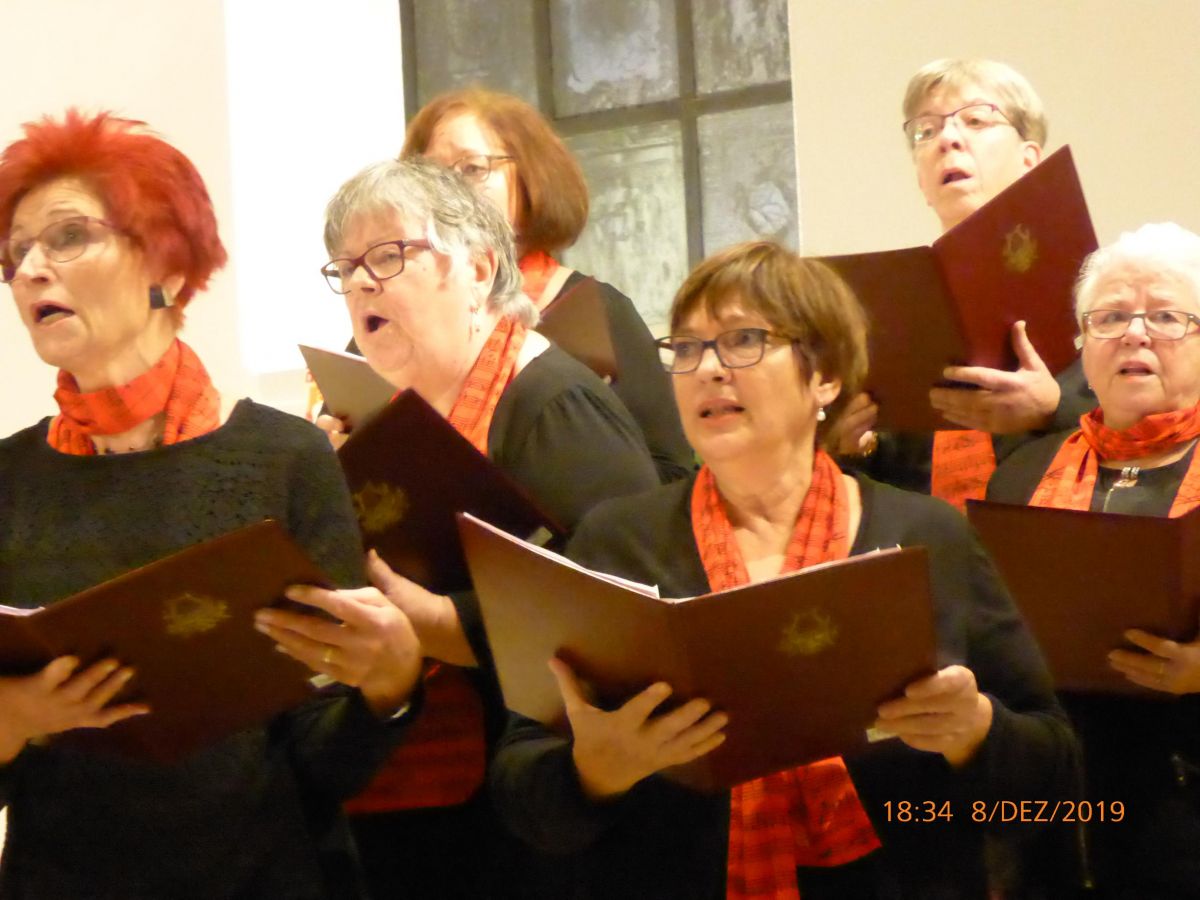 Am Sonntag, 08.12. trafen wir uns um 15.30 Uhr in der wunderschön renovierten Evangelischen Kirche in Hochstetten zur Stellprobe und zum Einsingen. Vor dem Konzert gab es noch eine Erfrischung im evangelischen Gemeindehaus und pünktlich um 17.00 Uhr begann unser Auftritt in der gut besuchten Kirche. Pfarrerin Frau Gholamvisy begrüßte alle Anwesenden herzlich und kündigte auch die jeweiligen Lieder mit ein paar passenden Sätzen an. Es war eine bunte Mischung aus zwölf deutschen und internationalen Liedern, alten und modernen Melodien, die sicher vielen bekannt waren. Dabei waren „Weihnachtszeit, Kinderzeit“, das „Trommellied“, „The first Nowel“, „Feliz Navidad“ und „Calypso Gloria“. Unsere Solistinnen Heidi Winter und Kristin Günter beeindruckten mit „Have yourself a merry little Christmas“ und „Still, still, still“ und Rainer Ritz hatte den Solopart beim „Weihnachts-Gesang – Cantique pour Noel“, alles sehr gut vorgetragen – bravo! Viel zu schnell war das Konzert vorüber, wie auch Pfarrerin Gholamvisy bemerkte. Sie überreichte unserem Dirigenten Aldo Martinez ein kleines Präsent und bedankte sich beim Chor für diesen schönen Auftritt. Statt Eintritt wurde eine Spende zu Gunsten der Kirchenrenovierung erbeten, dafür haben wir uns gerne eingesetzt. Wir bedanken uns auch bei Frau Gholamvisy und bei allen Besuchern unseres Benefizkonzerts, es war uns eine Freude hier aufzutreten.