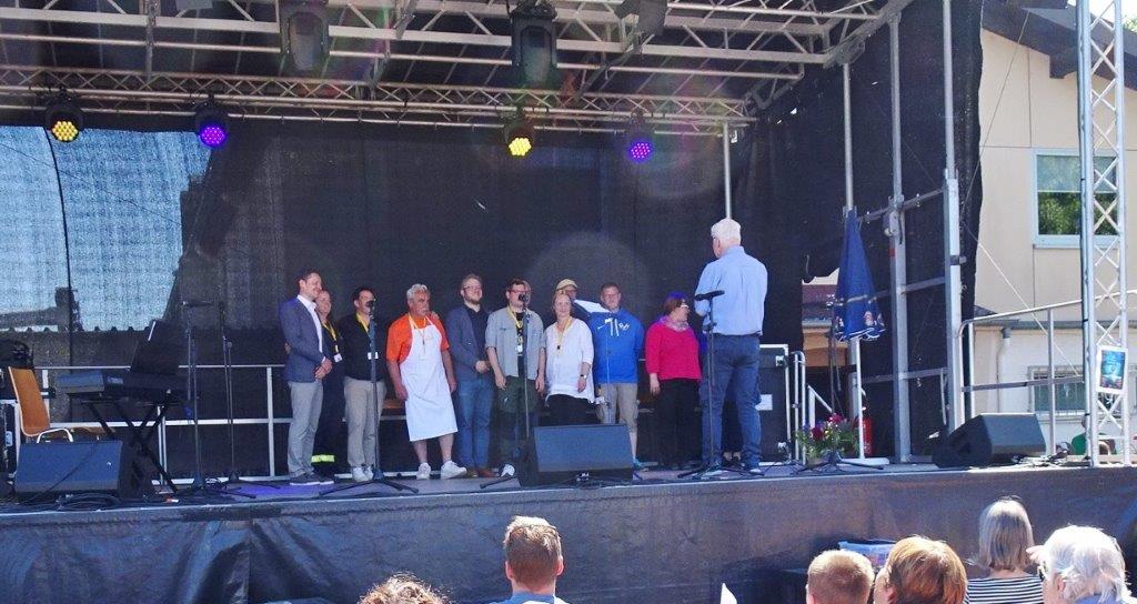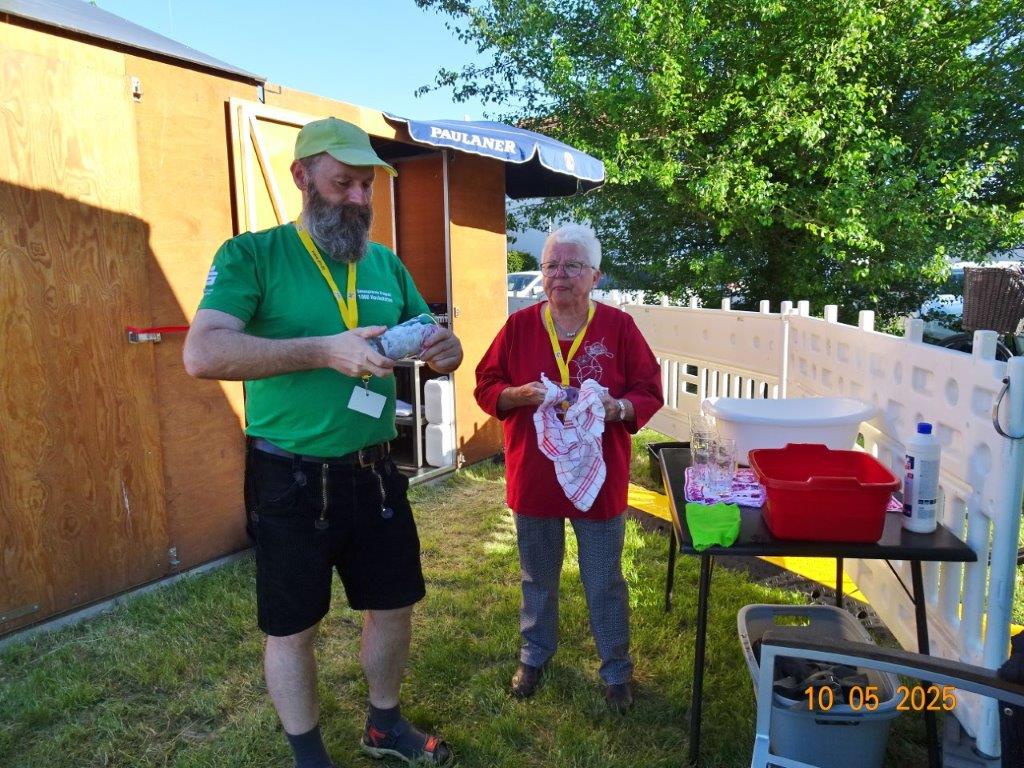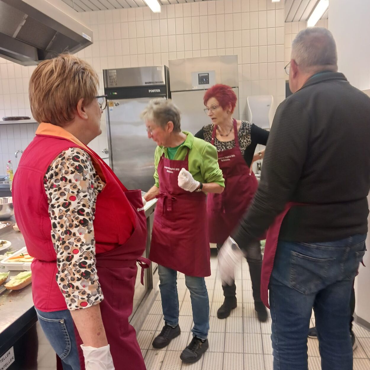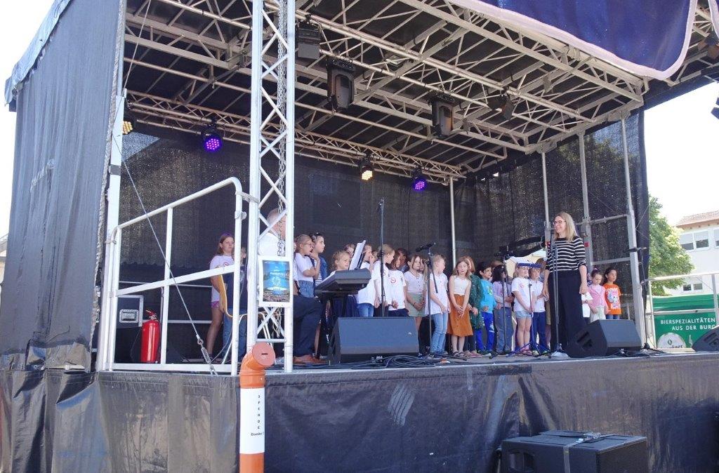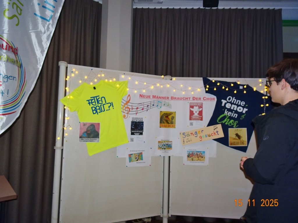 Im Vorfeld wurde fleißig geprobt, auch für ein gemeinsames Lied mit unserem Bruderverein GV-Sängerbund Linkenheim - der Miteinandertag konnte kommen. Die teilnehmenden Vereine hatten sich ins Zeug gelegt, um ein schönes Event zu bieten, voran der GV Sängerbund, der zum Miteinander geladen hatte. Freitags und samstags wurde im Bürgerhaus fleißig gewerkelt, um alles einladend zu richten. Samstags füllte sich die Kuchentheke mit leckeren Kuchen und Torten und in der Küche wurden Brötchen und Wurstsalat gerichtet, um für das leibliche Wohl der Anwesenden zu sorgen. Ab 15.00 Uhr bot die KuGel ein Programm für Kids und ab 15.30 Uhr war dann der Grundschulchor Hochstetten mit seiner Chorleiterin Frau Bamberger auf der Bühne. Sie verstand es meisterhaft, die 60 Kinder bei den Liedvorträgen zu führen und deren Begeisterung war förmlich zu spüren – bravo! Gegen 18.00 Uhr waren dann unsere zwei Vereine mit insgesamt vier Chören zu hören. Der Frauenchor des Sängerbund startete, gefolgt vom Männerchor, die sich mit modernen, überwiegend englischen Songs bestens präsentierten. Danach folgte unser Chor mit Grönemeyers „Mambo“, „Ein Lied kann eine Brücke sein“ und dann das Fusionslied zu unserem Gemeinde-Jubiläum mit dem eigens umgedichteten Text von „Solang man Träume noch leben kann“. Der Neutralität halber hat hier unser Grabener Sänger Klaus Eichsteller gedichtet – vielen Dank Klaus!
