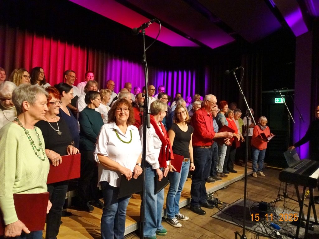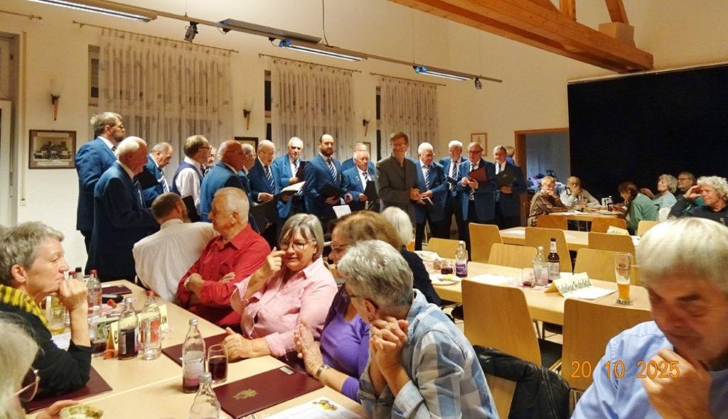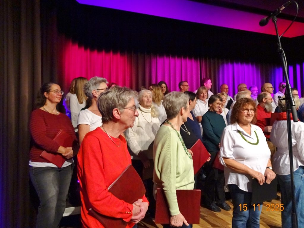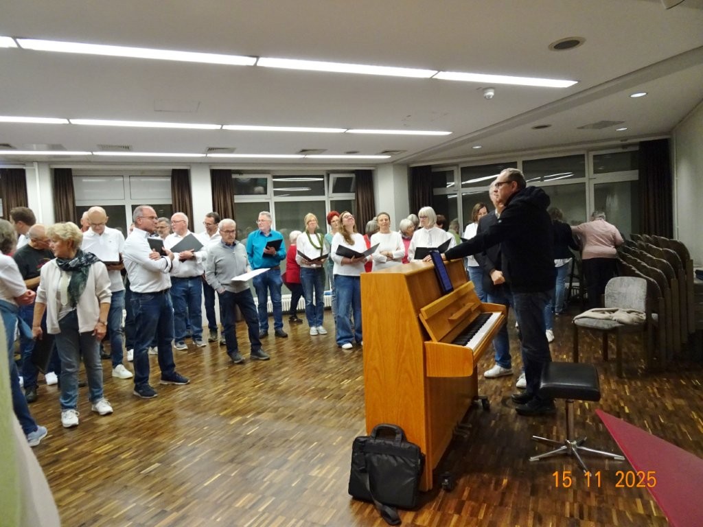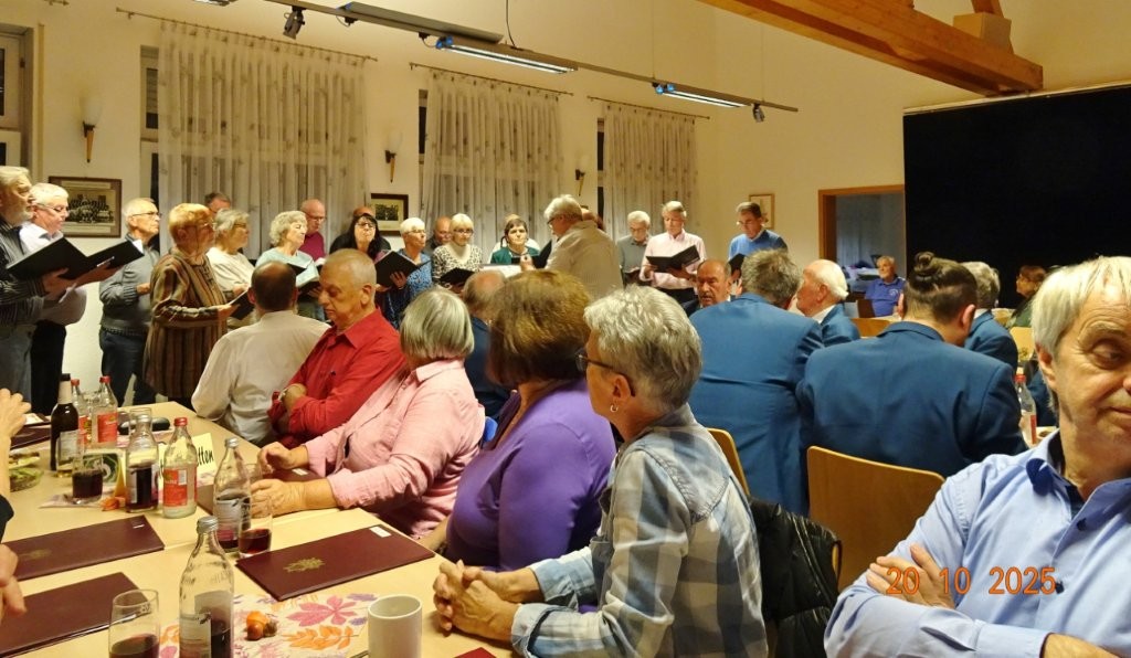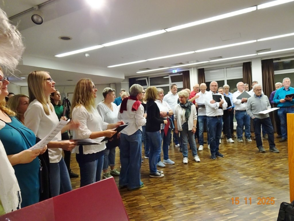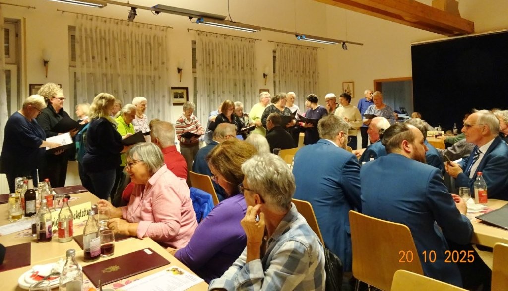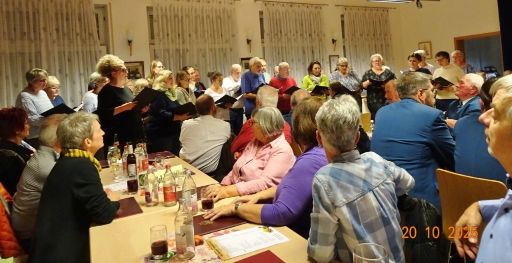 Am Montags 20.10. waren wir bei der Weinkerwe in Spöck im Einsatz. Im gut besetzten Vereinsheim der Eintracht Spöck begrüßte der 1. Vorsitzende Wolfgang Lautenschläger alle Anwesenden und sagte die Chöre, die auftraten, an. Unter der Leitung der drei Chorleiter Jutta Braun-Wingert, Joachim Langnickel und Aldo Martinez traten 7 Chöre auf, die unterschiedliche Chormusik darboten, von traditionellen Liedern, Evergreens und modernen Songs war alles vertreten. Dem Publikum gefiel´s, auch unsere 3 Lieder: „Ein Lied kann eine Brücke sein“, „Spiel mir eine alte Melodie“ und „Why we sing“ kamen gut an. Besonders letzteres, wobei unsere Sängerin Kristin und Ehrenvorstand Harald mit ihren Solostimmen brillierten! Natürlich waren wir auch wieder mit Speis und Trank in Spöck bestens versorgt, bevor wir uns später auf den Heimweg machten.