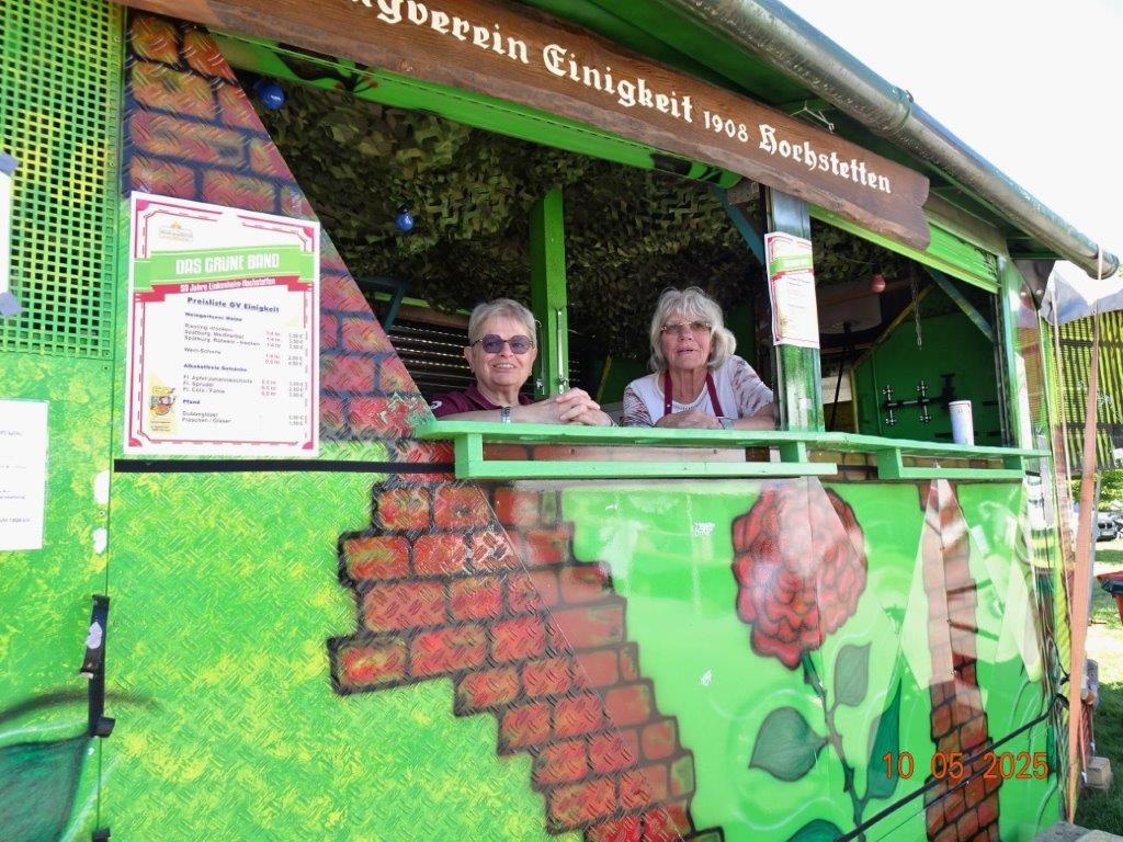 Am Samstag, 10.05. auf dem TVH-Familienfest galt es unseren Weinstand einzurichten. Dazu hatten sich viele Chormitglieder eingefunden und so klappte das wunderbar. Hier gleich ein herzliches Dankeschön an unsere ganze Helferschar, die über die Festtage für uns im Einsatz war, super toll! Danke auch an die Kuchenbäckerinnen, die damit den Kuchenverkauf vor Ort unterstützten. Sonnige Tage waren dem Fest beschert und so wurde die viele Arbeit vor, während und nach dem Fest belohnt. Riesigen Dank auch an die Macher, sie hatten sich da wirklich was einfallen lassen und die Familien fühlten sich sichtlich wohl. Bei dem vielseitigen Unterhaltungsprogramm, ob in den tollen Hüpfburgen, bei der deutschen DOG-Spiel-Meisterschaft, oder anderen Aktivitäten, jeder konnte auf dem TVH-Gelände sein Vergnügen finden. Unser Beitrag war dann sonntags, wir gaben um 14.00 Uhr mit unserem Dirigent Aldo Martinez eine Kostprobe mit Liedern aus unserem Theater-Konzert zu Gehör.