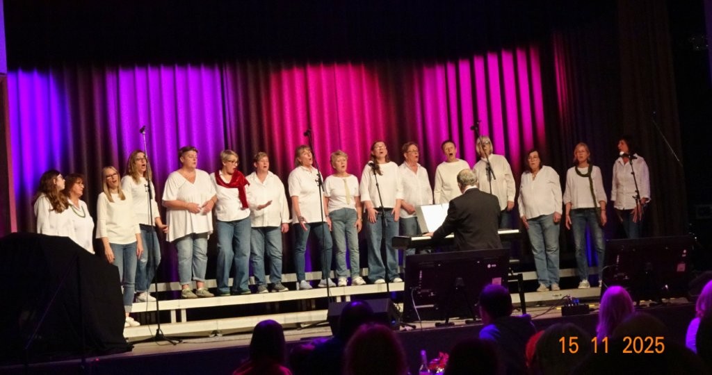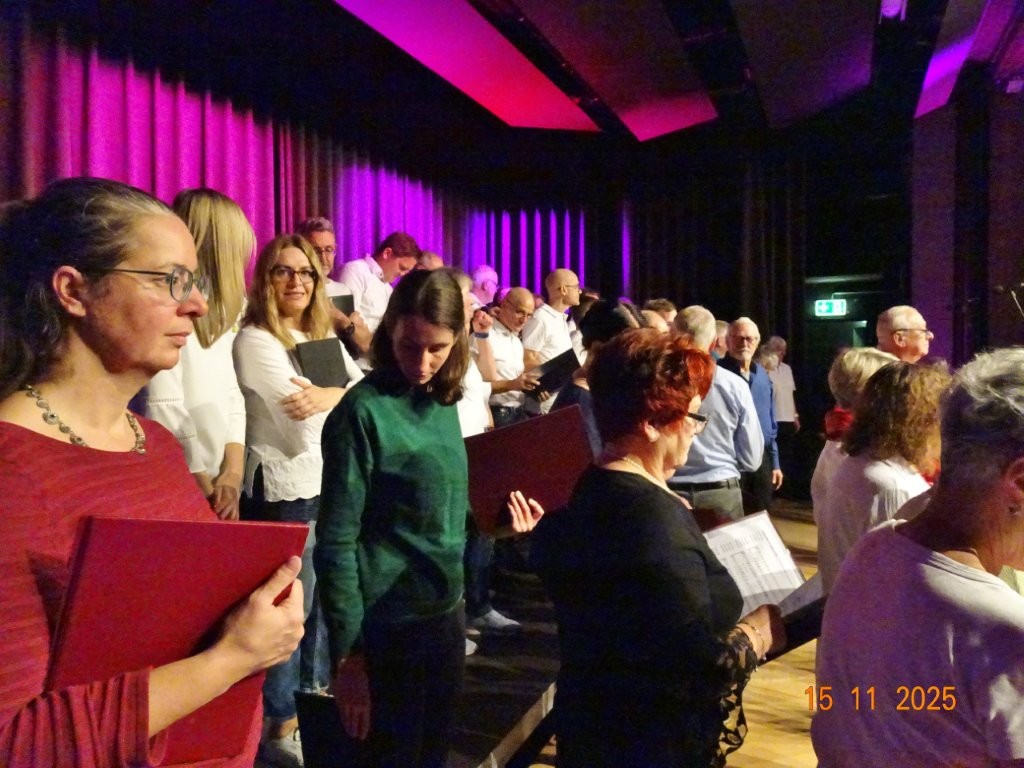 Beeindruckend war danach auch der Coro Minuetto. Nach ihm rief die 1. Vorsitzende Simone Wildschütz nochmal die Einigkeit Hochstetten für ein gemeinsames Lied auf die Bühne. Mit „Why we sing“, bei dem vier Solostimmen aus beiden Ortsteilen brillierten, begeisterten wir das Publikum und verließen nach einer Zugabe die Bühne. Schade, dass nicht mehr Publikum den Weg ins Bürgerhaus gefunden hatte, es hätte sich gelohnt! Im Anschluss fand die Karaoke-Party statt, bei der man viele Sangestalente hören konnte, die man gerne für den eigenen Chor hätte anwerben wollen. Also wer Lust auf Chorgesang hat, einfach zum Probentag kommen. Allen Aktiven, die dieses Event haben gelingen lassen, ein ganz herzliches Dankeschön. Man kann hier die Einsätze gar nicht genug schätzen, ob bei der Planung, Vorbereitung und den Diensten bei der Veranstaltung selbst – ein ganz großes Lob an alle!! Bericht und Bilder wieder auf unserer Homepage.