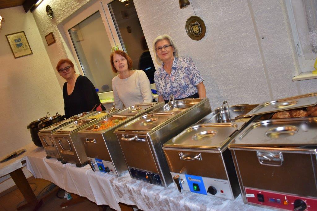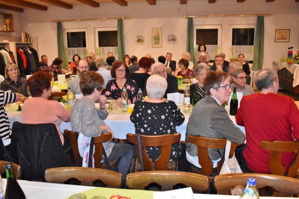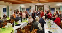 Nach einem Sektempfang sangen wir die vier Wunschlieder, das Geburtstagslied, Weit, weit weg, Welch ein Geschenk ist ein Lied und den Irischen Segenswunsch. Unser Vorstand Klaus Reinhardt überreichte Wilfried Jung ein Präsent des Vereins, da Wilfried passend an diesem Tag seinen Geburtstag hatte. Die beiden Christas hatten schon ein paar Tage zuvor ihre 75. Geburtstage begangen. Die Gäste wurden von den Jubilaren begrüßt, dann wurde das Buffet eröffnet. Wir wurden wieder bestens verwöhnt und mit Hintergrundmusik durften wir es uns schmecken lassen. Der Musiker Joschi, ein Saarländer mit Allgäuer Wurzeln, verstand sein Handwerk und hatte die passenden Songs für die Gäste parat. Da war die Tanzfläche nach dem Essen ständig belegt und es wurde ausgelassen getanzt.