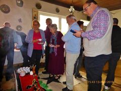 Am Samstag 13.04. hatte Robert Schnell zur Feier seines 60. Geburtstages ins Sängerheim eingeladen. Freitags hatten wir nochmal intensiv seine Wunschlieder geprobt und so konnte am Samstag im Vereinsheim nichts mehr schiefgehn. Um 15.00 Uhr begann das Fest im Erlich, wo wir mit einem Hauch Afrika begrüßt wurden, genauer, aus Eritrea. Man konnte einer eritreischen Kaffeezeremonie beiwohnen und auch feinen Tee und Gebäck von dort genießen. Einige Sängerinnen hatten leckere Kuchen gebacken, so konnte man gut versorgt am Tanztee mit dem Duo Ute und Egon teilnehmen. Dazwischen gabs noch eine Trommeldarbietung der Extraklasse, das hört man nicht alle Tage – super gemacht.