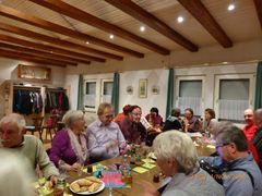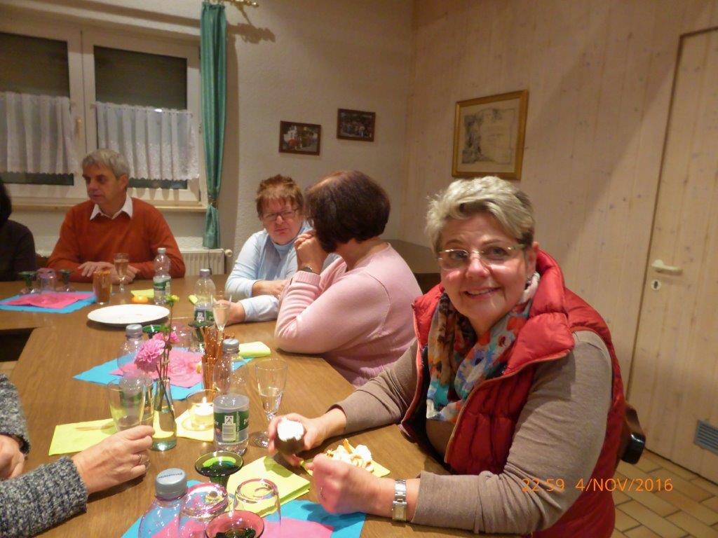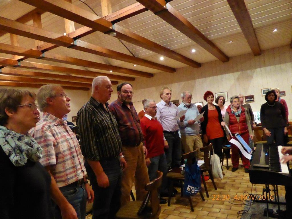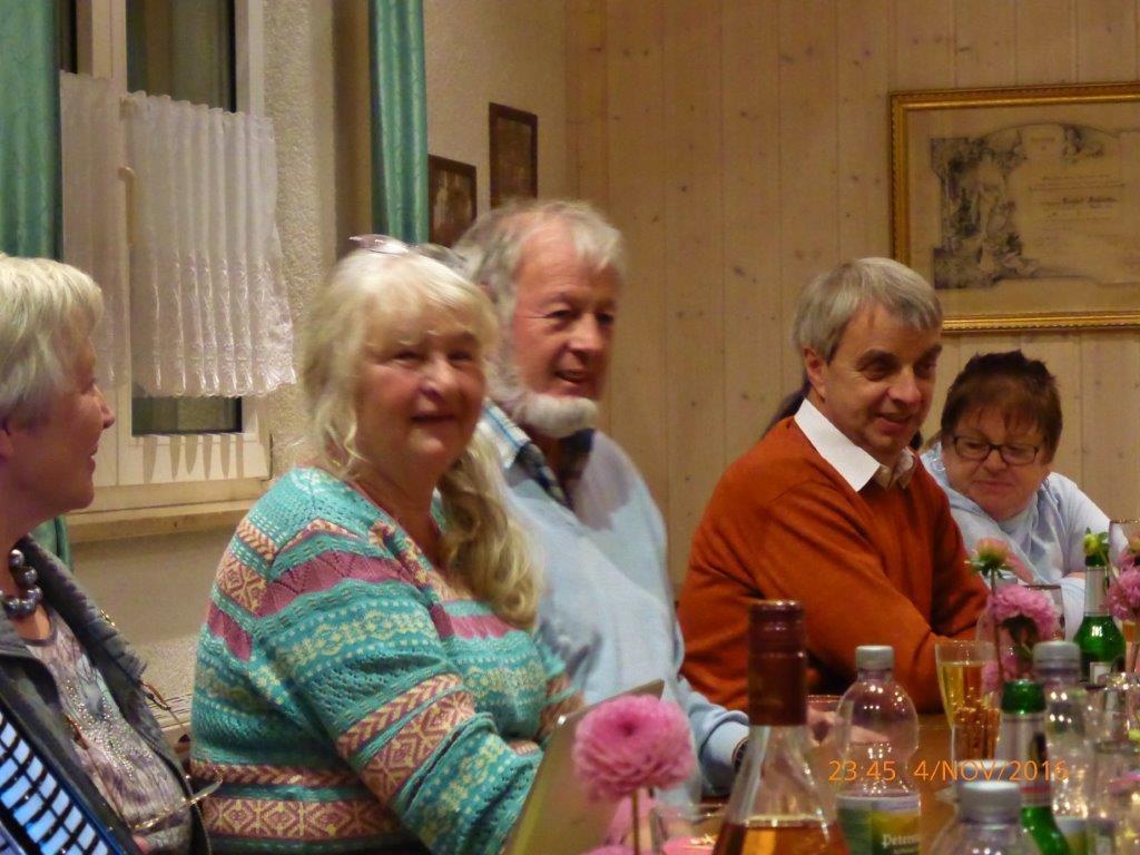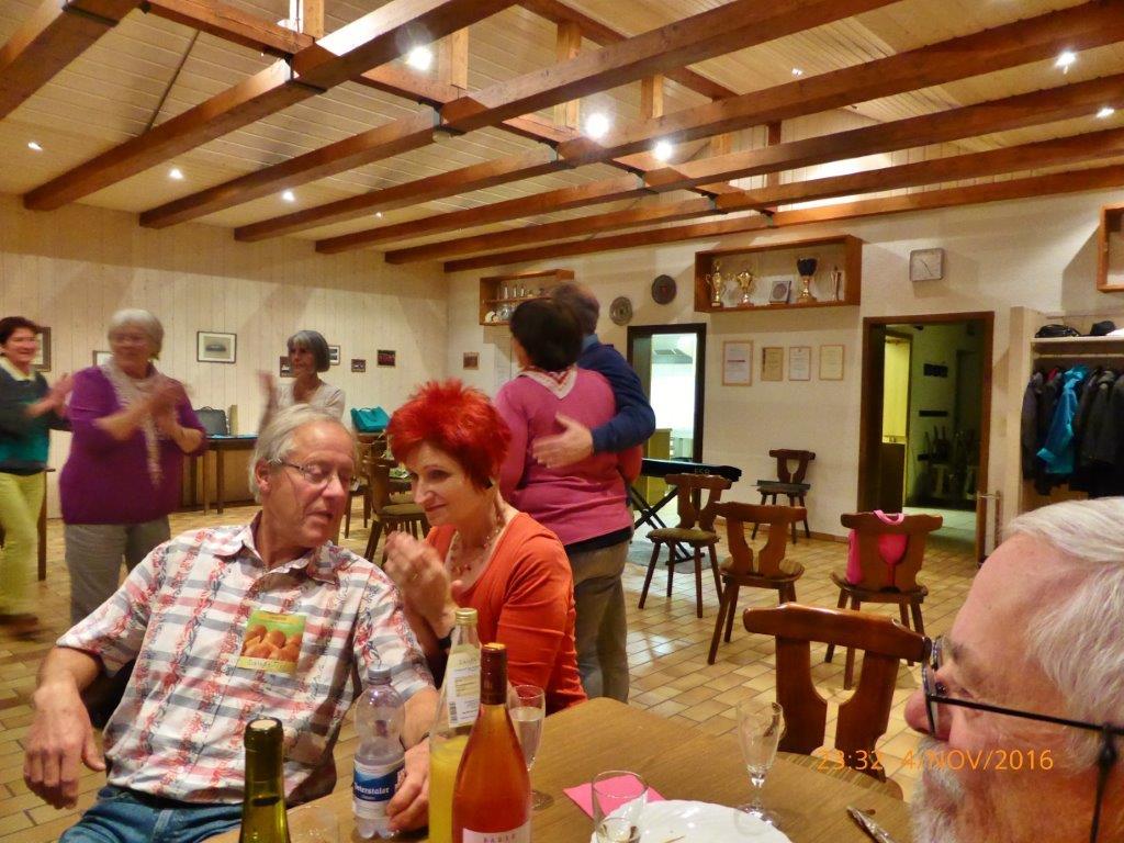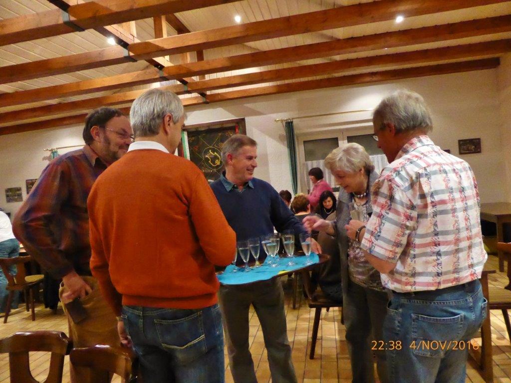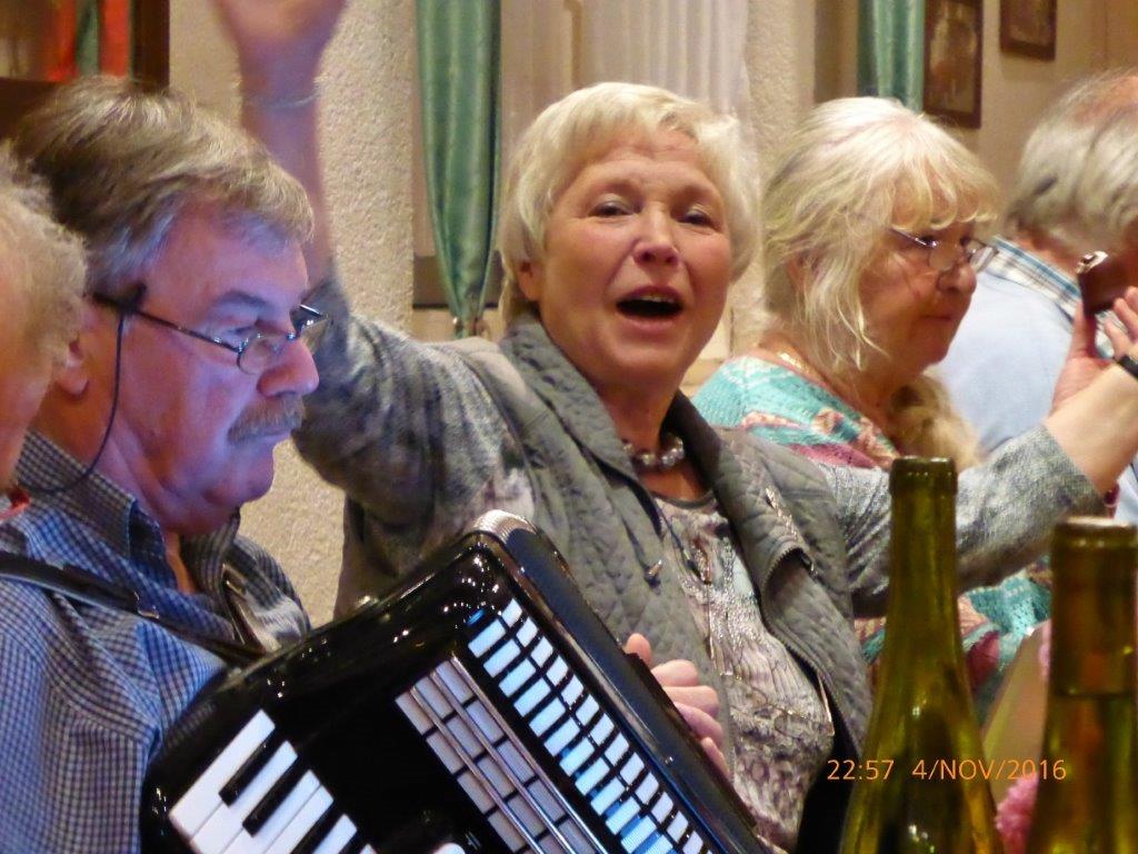 Bei unserer Chorprobe am 04.11. Freitag feierte Ute König im Anschluss an die Chorprobe ihren 60. Geburtstag mit uns nach. Ute wünschte sich als Geburtstagsständchen „Goodnight sweet heart well its time to go“, diesem Wunsch kamen wir gerne nach. Klaus König hatte derweil die Sektgläser gefüllt und mit einem leckeren Imbiss dazu war das wieder ein schöner Abend. Klaus Eichsteller spielte für Ute noch ein paar flotte Songs auf seinem Akkordeon, es wurde mitgesungen, geschunkelt und sogar mitgetanzt, auch mit 60 geht’s noch rund. Ein Danke an Euch!!