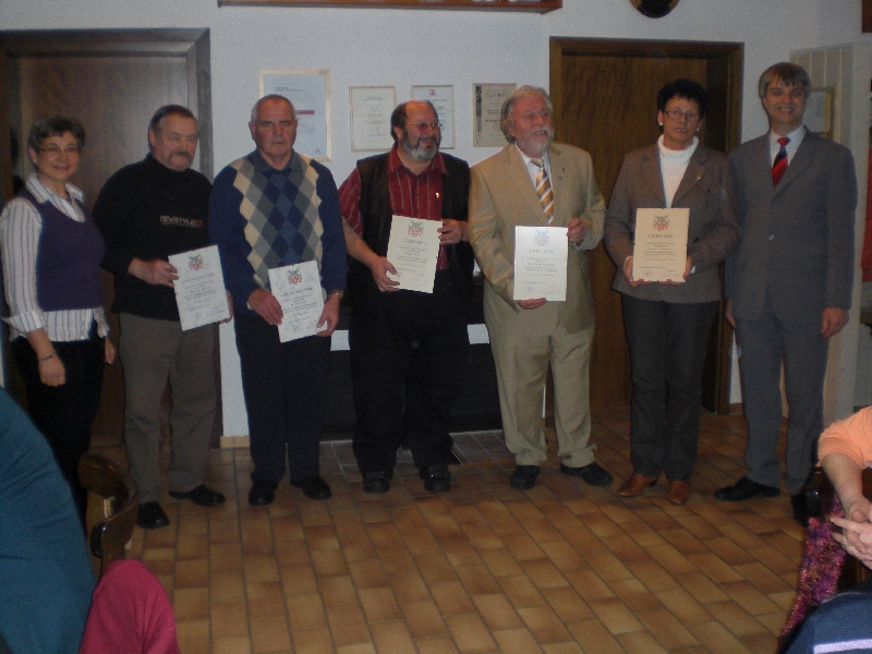 Nach einem kurzen Streifzug durch das Jahr 2009 gab der Vorsitzende die aktuellen Mitgliederzahlen bekannt. Der Verein hat nun 160 Mitglieder, davon 40 Ehrenmitglieder, einige der 44 Aktiven sind bereits Ehrenmitglieder. Danach lies Schriftführerin Karin Fürniß mit einem ausführlichen Bericht die Aktivitäten des vergangenen Jahres Revue passieren. Kassenverwalterin Reinhilde Fürniß gab Einblick in die finanzielle Entwicklung des Vereins und wies auf durchgeführte Renovierungsarbeiten hin. Sie betonte, dass der Verein auf das Engagement jedes einzelnen Mitglieds angewiesen ist, da die Beiträge nicht für die laufenden Kosten ausreichen. Kassenprüfer Reinhard Raetsch, der zusammen mit Prof. Dr. Eberhard Halter die Kasse geprüft hatte, bescheinigte der Schatzmeisterin saubere und solide Arbeit und empfahl ihre Entlastung. Gemeinderat Klaus König führte die Abstimmung durch, der Kassenverwalterin und der gesamten Verwaltung wurde von der Versammlung einstimmig Entlastung erteilt.