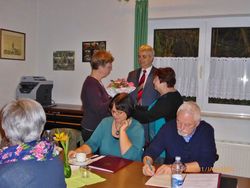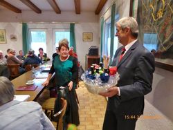 Klaus Reinhard würdigte ihre Leistungen mit Dank und einem Blumenstrauß. Neu in die Verwaltung wurde die Vermietung des Vereinsheims aufgenommen. Dieses Amt wird nun von Brigitte König geführt unter Mithilfe von Christel Wagner und Vreni Dietrich. Ein Dank an diese Beiden, die bereits jahrelang die Vermietung hauptamtlich geleistet haben. Christel Wagner hat auch die Getränkebestellung immer vorbildlich bewältigt. Mit Brigitte König wurde eine tüchtige und gewissenhafte Nachfolge gefunden und auch mit Henry Delincée werden wir eine gewiefte Verstärkung in die Vorstandschaft bekommen. Ein Dankeschön an alle für die Bereitschaft weiter zu machen. Und einen weiteren Dank an die fleißigen Kuchenbäckerinnen und das emsige Küchenteam, die uns alle gut versorgten.