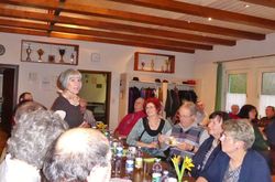 Nach der Eingangsrede ließ Pressewartin Doris Meder das Sängerjahr noch einmal lebendig Revue passieren und überraschte am Ende Klaus Reinhardt mit einem kleinen Präsent des Vereins. Die Arbeit seiner 10-jährigen Vorstandschaft sollte einfach mal gewürdigt werden. Die Vizedirigentin und Kassiererin Reinhilde Fürniß hat ihr Amt auch schon 10 Jahre inne und bekam von der 2. Vorsitzenden Christa Jung-Wittiger originelle Handschuhe mit Klettbeschlag, so dass sie auch künftig das Geld fest in Händen hält. Unsere Notenwartin Brigitte Lang wurde für 30 Jahre Vorstandstätigkeit in verschiedenen Ämtern mit einem Frühlingsstrauß geehrt.