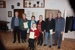 Für 5 Jahre aktives Singen wurden Biggi Brüstle und Bernd Kurzmann mit der Vereinsnadel E geehrt. Bereits seit 15 Jahren aktiv sind Christa Jung-Wittiger und Peter Huck, sie wurden mit der silbernen Ehrennadel dekoriert. Zu Ehrenmitgliedern ernannt wurden für 30 Jahre aktive Treue zum Chor Reinhilde Fürniß und Inge Hofmann und ebenso Gerda Arnold für 40 Jahre passive Mitgliedschaft. Vorsitzender Klaus Reinhardt überreichte die entsprechenden Nadeln und Urkunden mit herzlichen Dankesworten.
