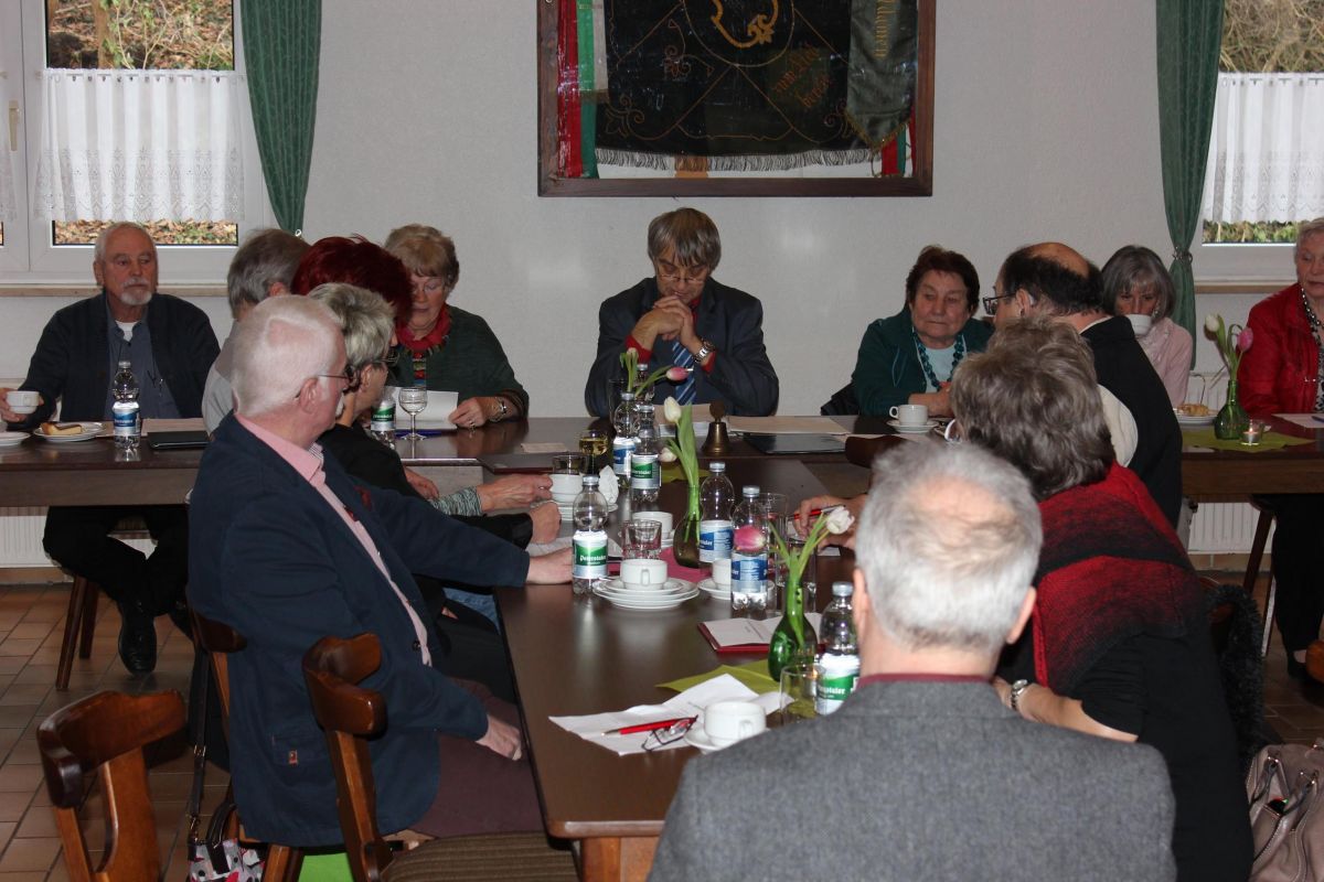 Die Veranstaltung begann gemäß Tagesordnung mit zwei Liedern („Only You“ und „Weit, weit weg…“) unter der Leitung von Vizedirigentin Reinhilde Fürniß, die den verhinderten Chorleiter Aldo Martinez ausgezeichnet vertrat. Zwischen beiden Vorträgen begrüßte Vorsitzender Klaus Reinhardt die anwesenden Ehrenmitglieder und Mitglieder darunter auch die erste Bürgermeisterstellvertreterin Dr. Iris Müller-Reinartz, den Ortskartellvorsitzenden Reinhard Rätsch und den Ehrenvorsitzenden Harald Dürr.