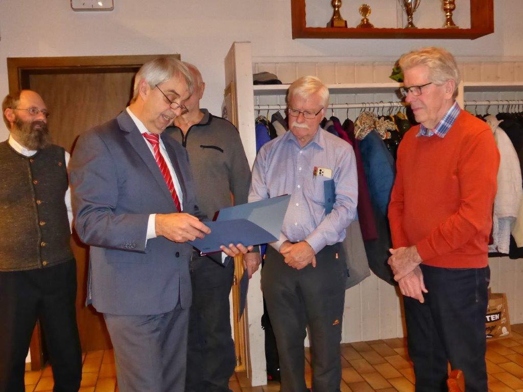 Walter Burgstahler wurde für 40 Jahre Mitgliedschaft zum Ehrenmitglied ernannt. Für die, die bei der Ehrung nicht dabei sein konnten, werden die Ehrennadeln nachgereicht.