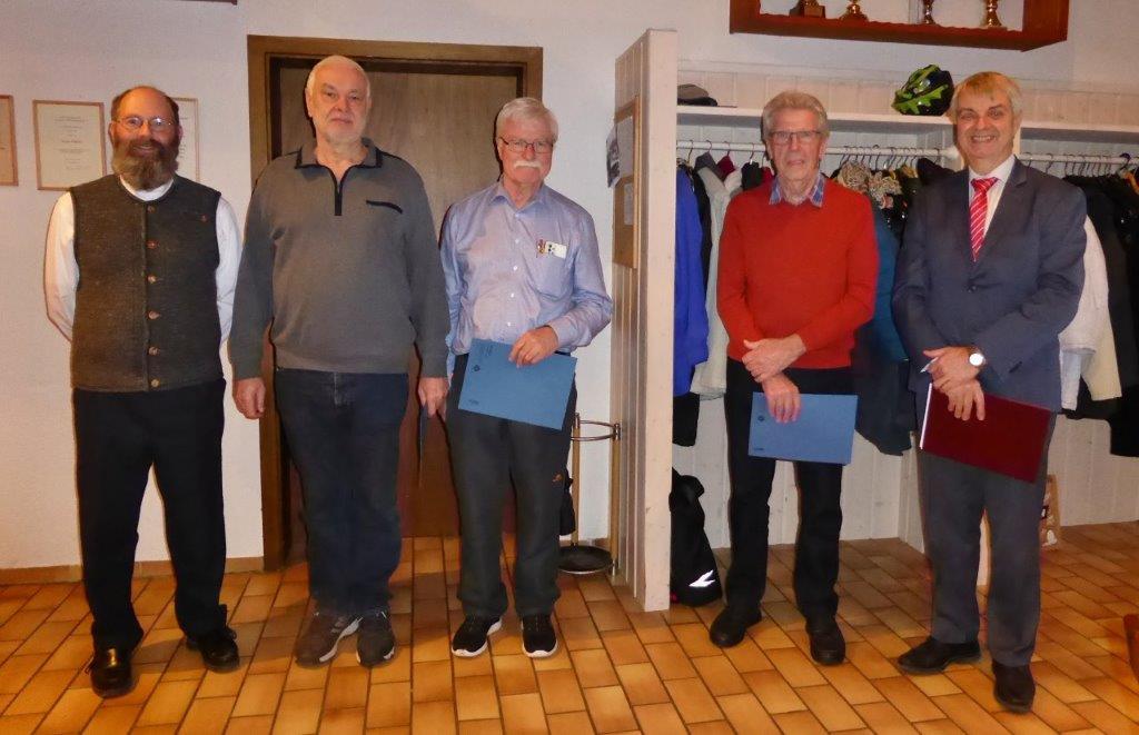 Die goldene Ehrennadel mit Urkunde für 30 Jahre Mitgliedschaft erhielten Michael Wittstock und Eberhard Halter. Hans-Jürgen Kühn, Marion und Timo Kubach waren leider auch verhindert.